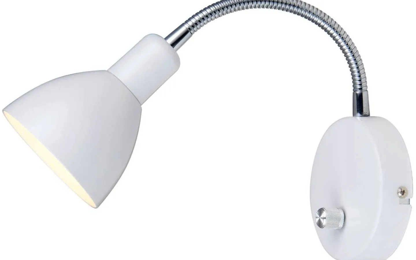 Tänder och släcker gör du via vridströmbrytaren som sitter på väggfästet. Levereras med 2m lång anslutningskabel med stickkontakt för vägguttag.