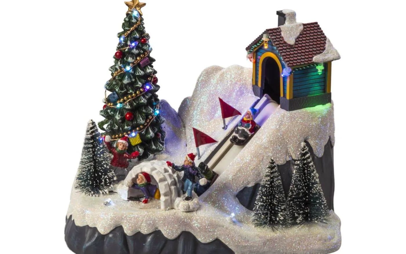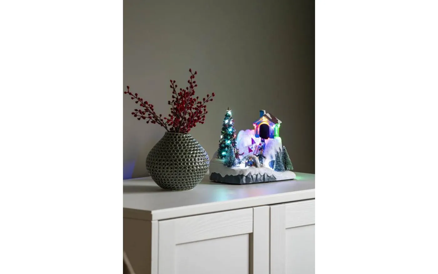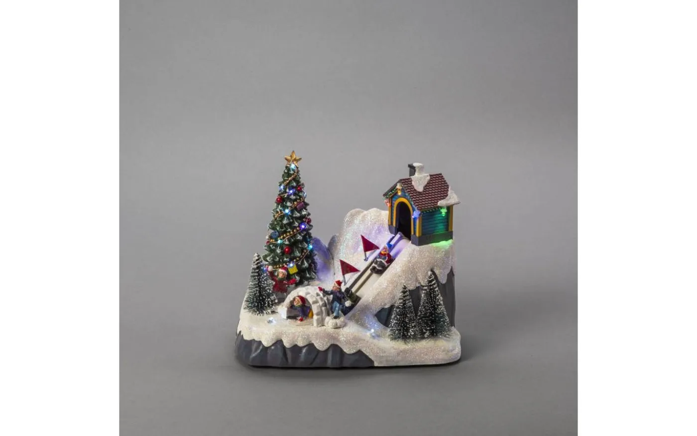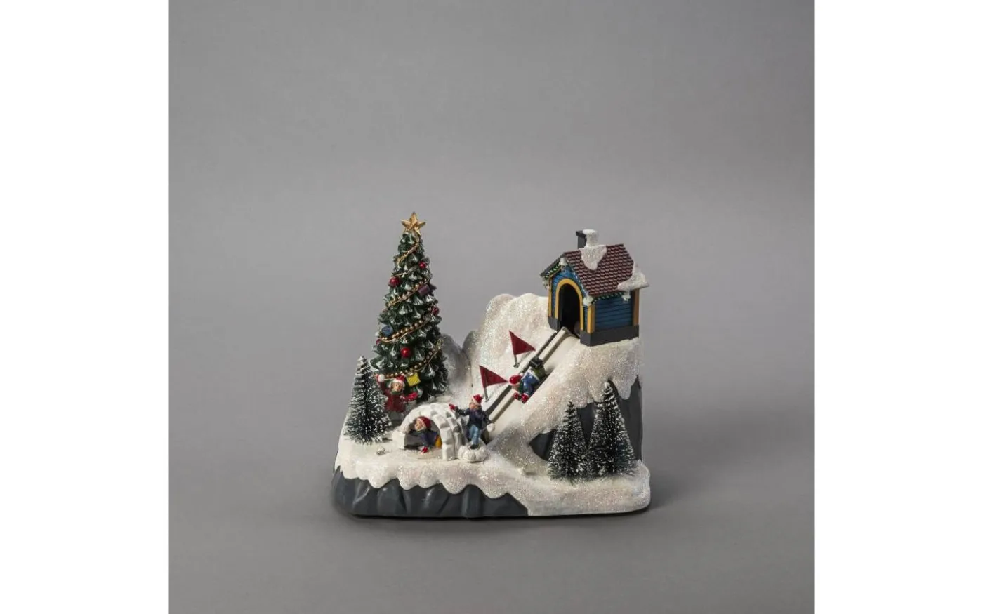 En charmig julby med kälkbacke, snöhydda, julgran och vintrig miljö – en liten sagovärld som fångar känslan av en gnistrande jul. Med detaljrika figurer och stämningsfull belysning skapar den en varm och inbjudande atmosfär i hemmet. Utrustad med praktisk timer (6h), så du kan njuta av skenet utan att behöva tänka på att släcka.