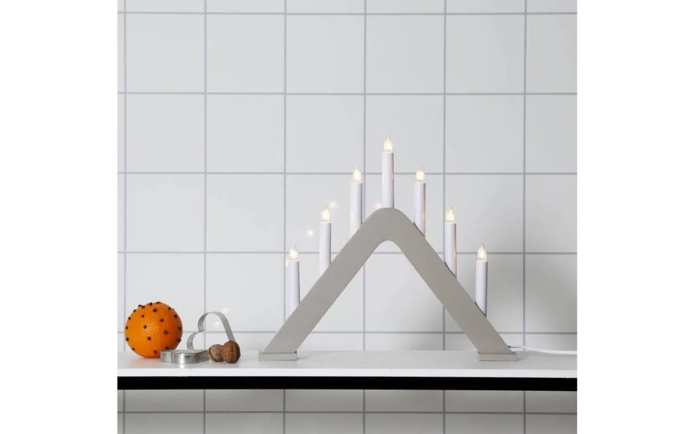 Jarve Adventsljusstake, från Star Trading, är en stilren 7-armad ljusstake i en klassisk A-form. Gjord i trä och färgad i en matt beige ton gör denna ljusstake sig rätt i hemmets alla hörn. Placera i ett mindre fönster eller varför inte på nattduksbordet för att få en riktigt härlig julstämning varje gång du vaknar.