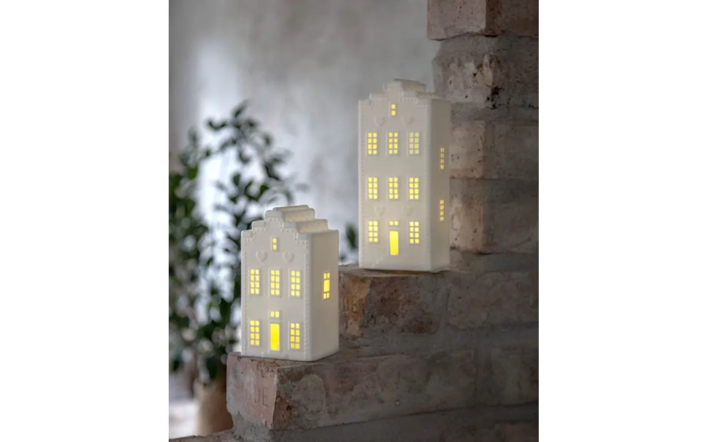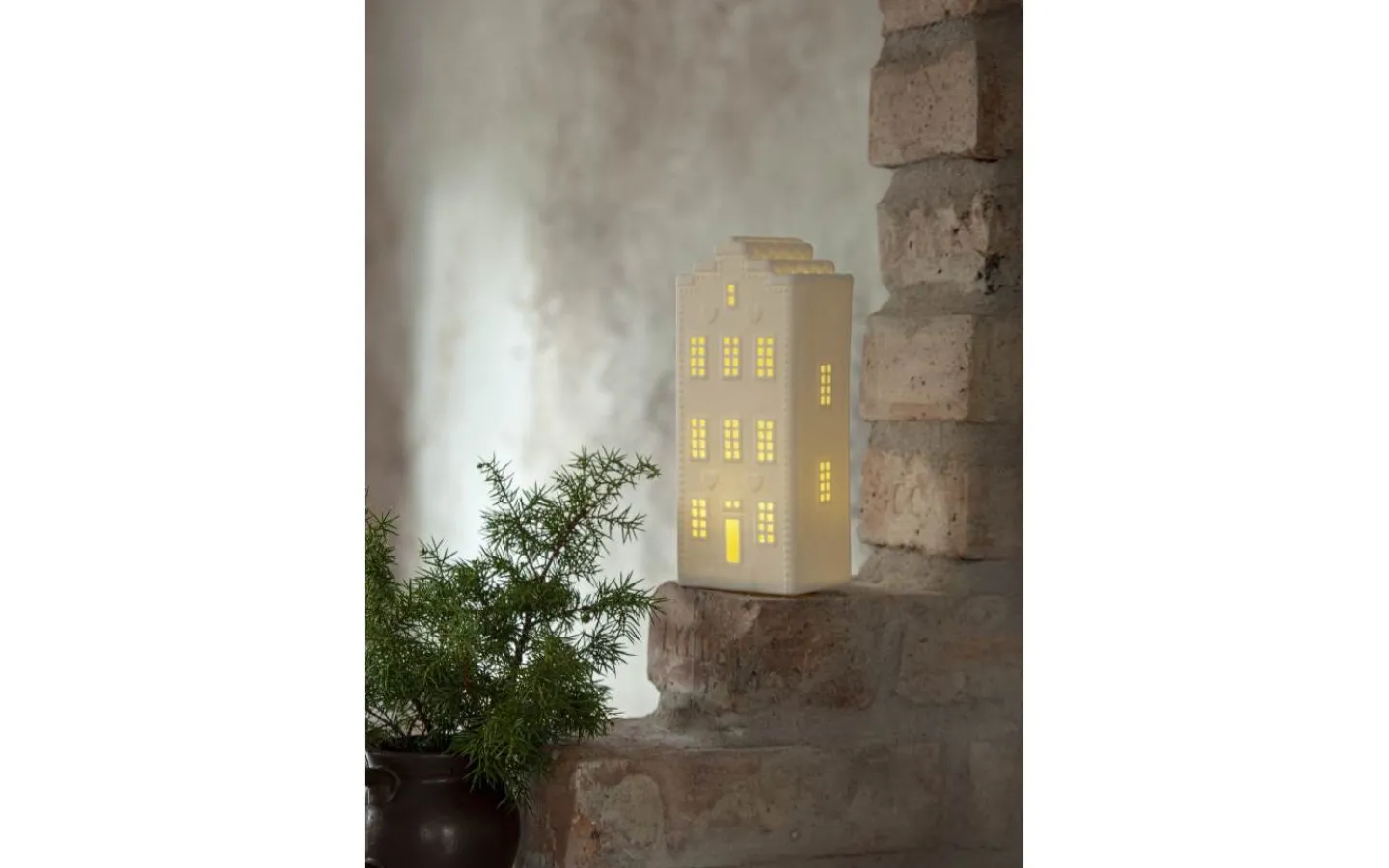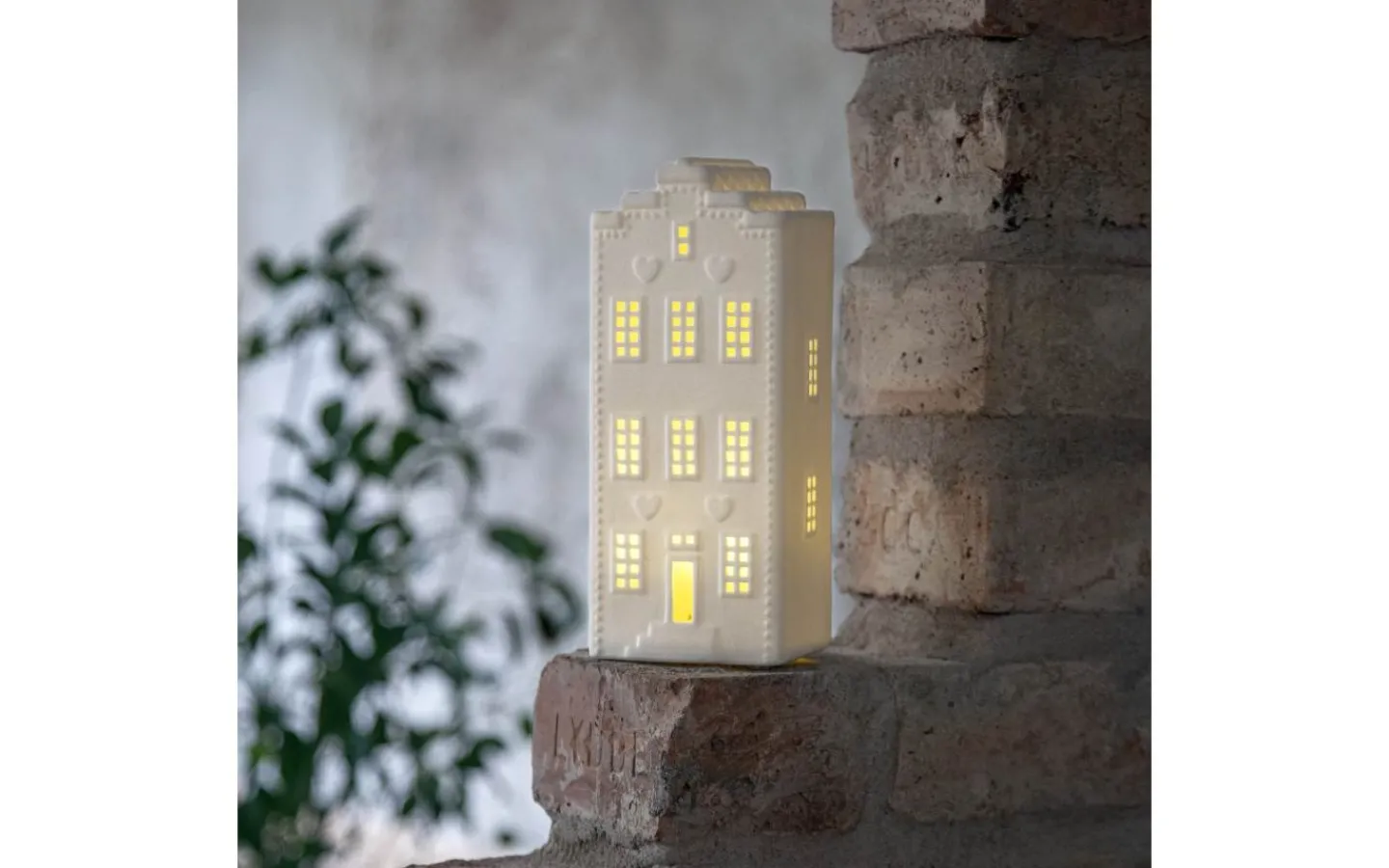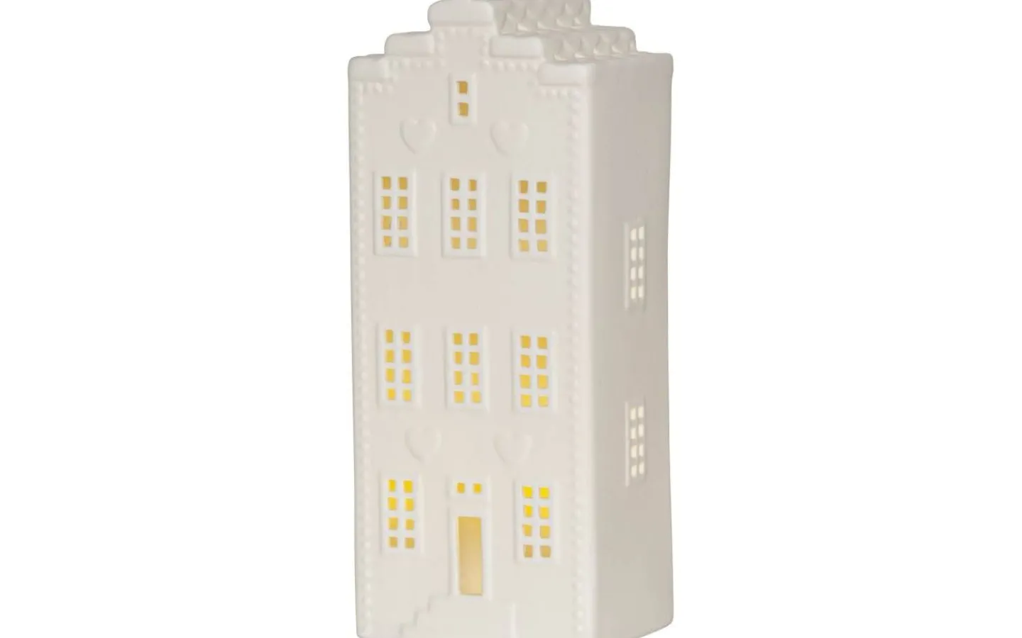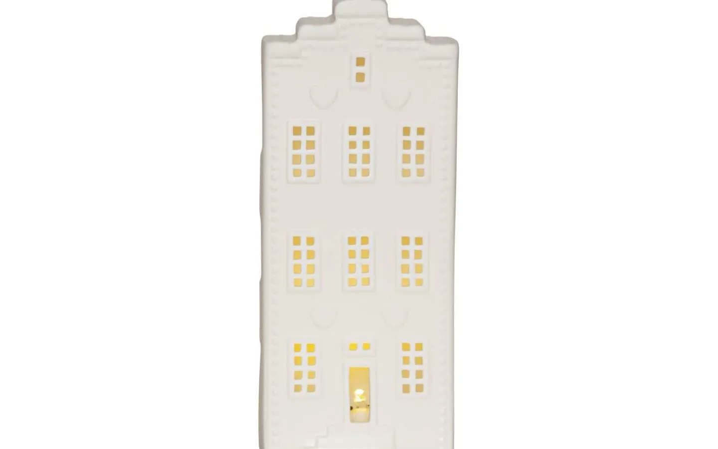 Ett vackert kanalhus i keramik för dekoration i hemmet. Lyser och sprider ett fint sken. För inomhusbruk. 3 batterier AG13 ingår.