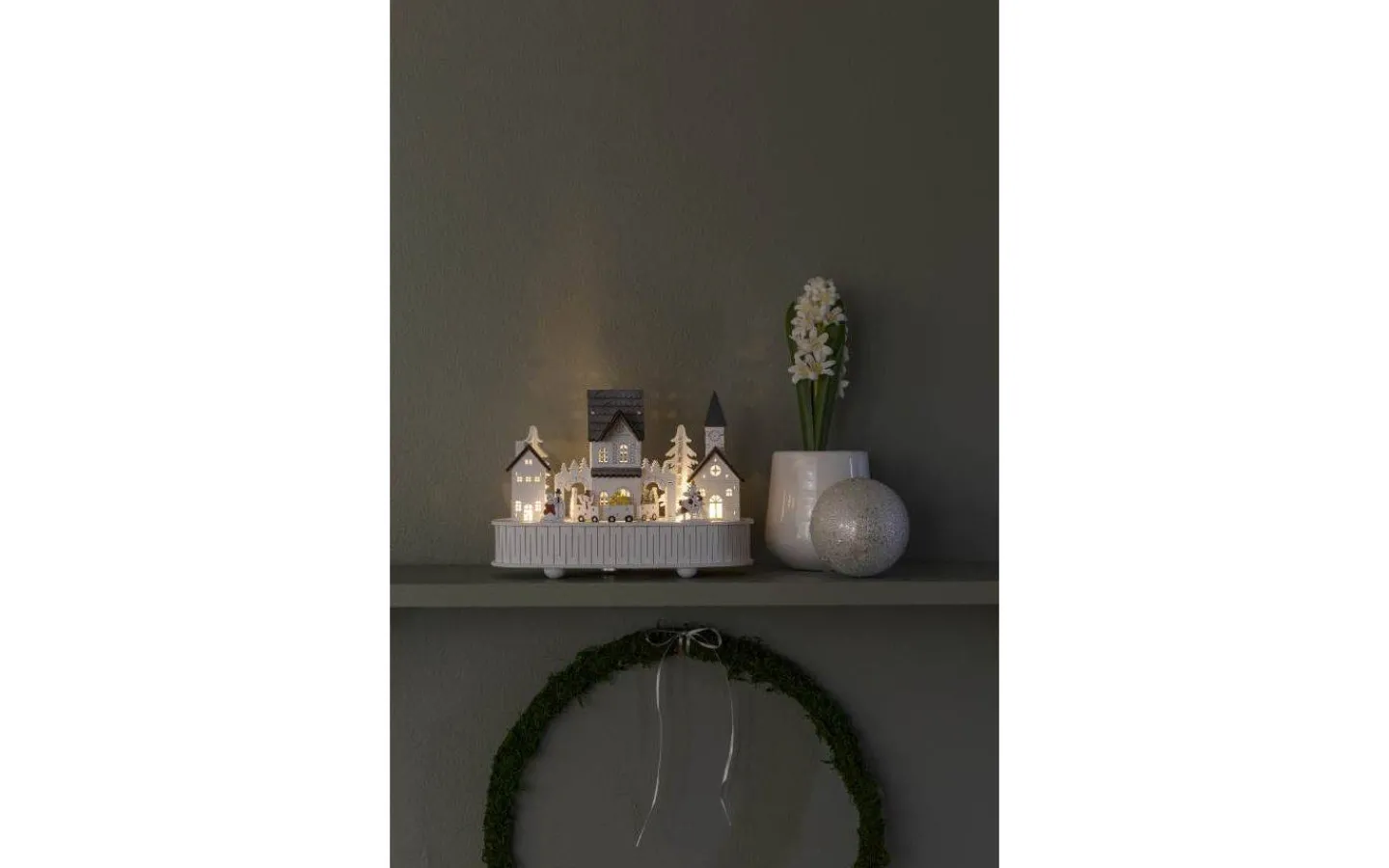 Batteridriven bordsdekoration från Konstsmide med små LED-lampor som lyser upp i ett härligt varmvitt ljussken.