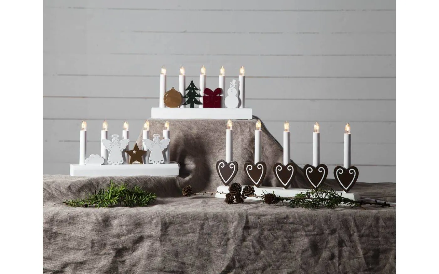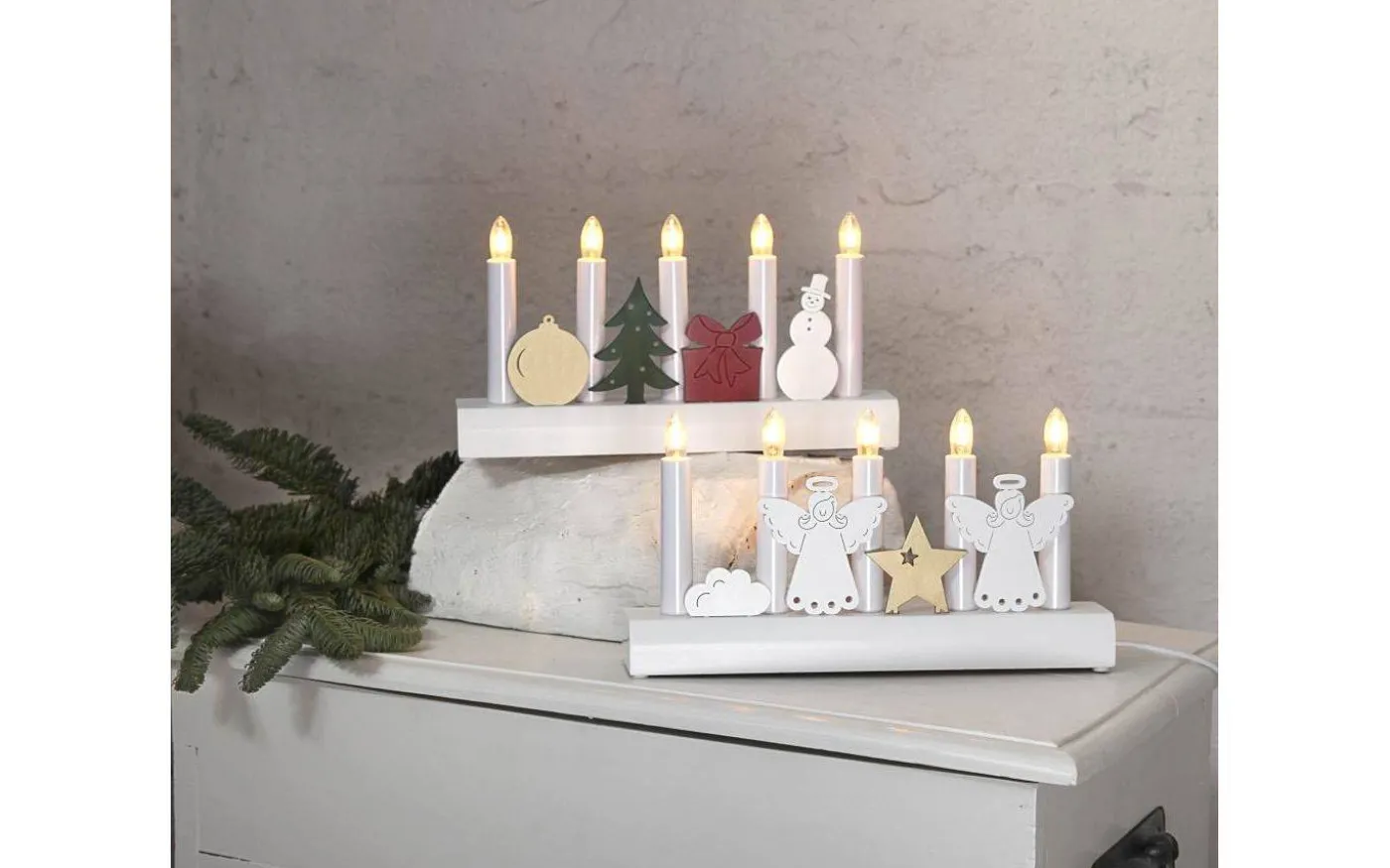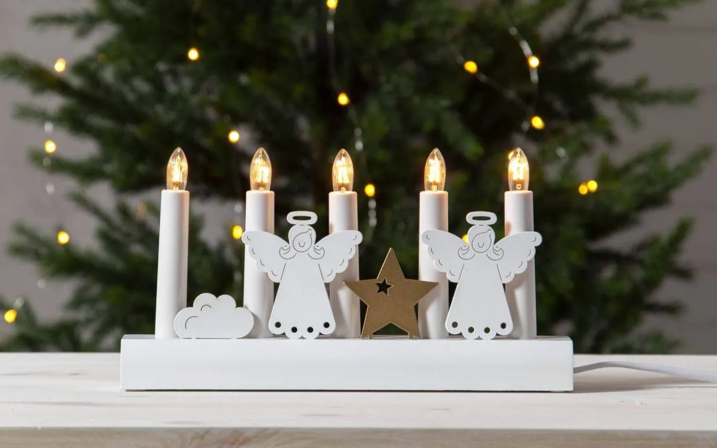 Söta adventsljusstaken Julia, från Star Trading, är en fin ljusstake i vitt trä med änglamotiv och en stjärna i guld. Denna fina 5-armade adventsljusstake gör sig lika vackert i barnrummet som i vardagsrummet och avger ett mysig ljussken i vintermörkret.