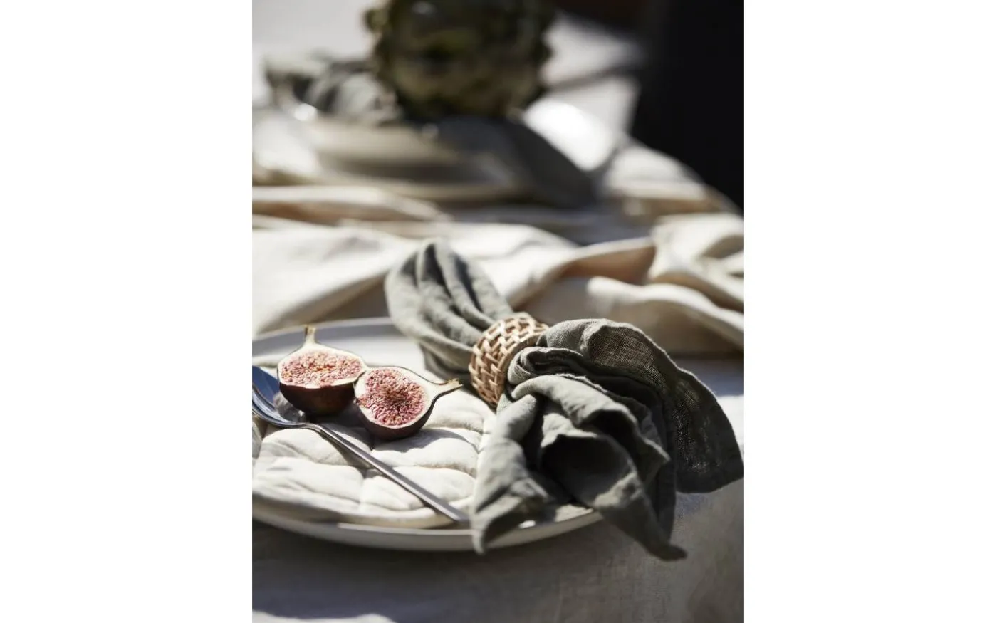 Enfärgad servett i lätt tumlat linne. Servetten är 45x45cm med kanter fållade med jeanssöm. Glöm inte att duka med matchande duk och bordsfilt. Linet är av hög kvalitet och har odlats i västra delarna av Europa.