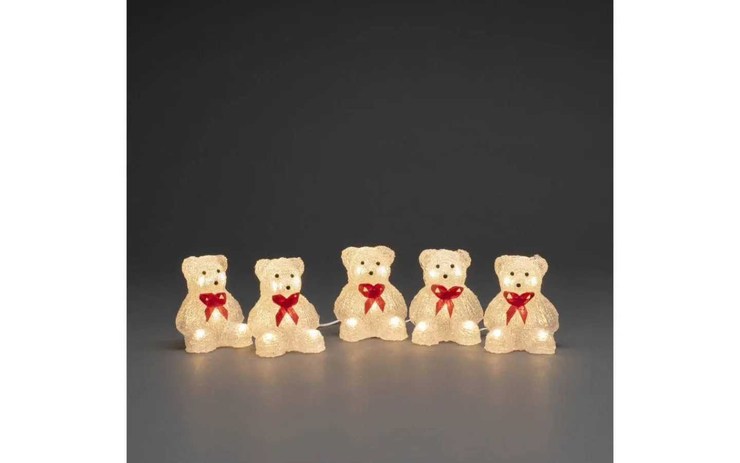 Dekorativ ljusslinga med små björnar i akryl. Denna ljusslinga från Konstsmide blir helt klart en härlig utomhusdekoration till jul!