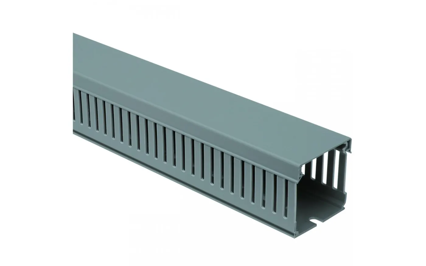 Kabelkanal enligt DIN 43659 av stabil konstruktion med öppna slitsar, vilket ger en enkel och snabb kabeldragning.