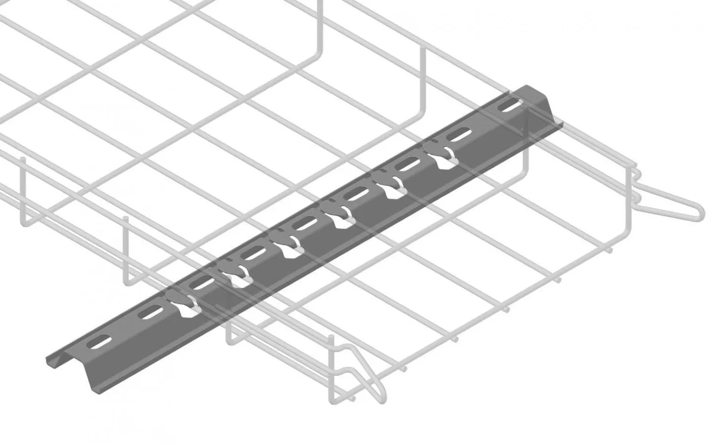 Konsol för elförzinkade trådstegar för montage dikt an vägg/golv/pelare eller för nedpendling med dubbla gängstänger. Trådstegen låses mot konsolen med klämmor som böjs ned. Kan kompletteras med ändskydd E11 337 90.