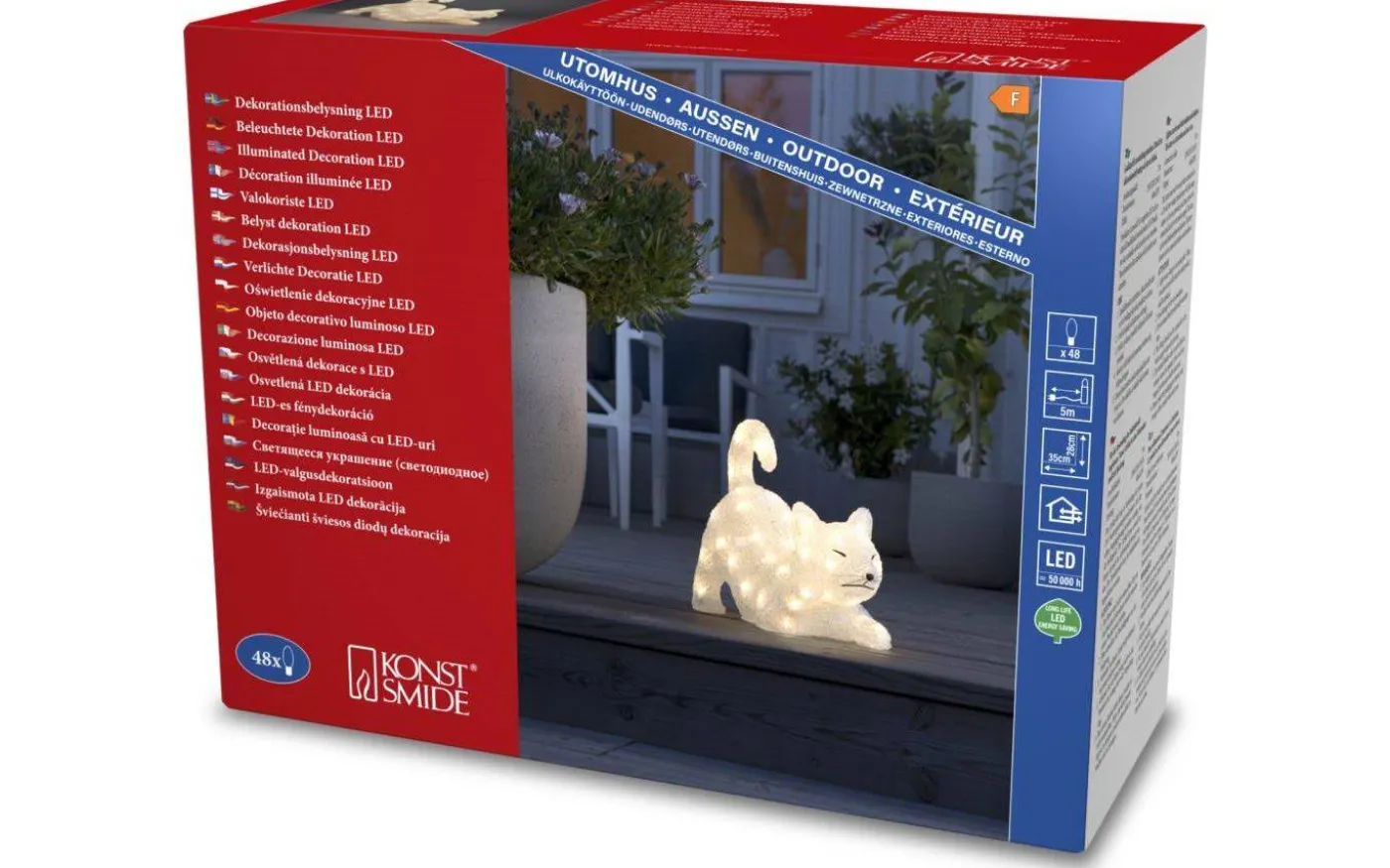 Härlig utomhusdekoration i form av en liggandes katt i akryl från Konstsmide.