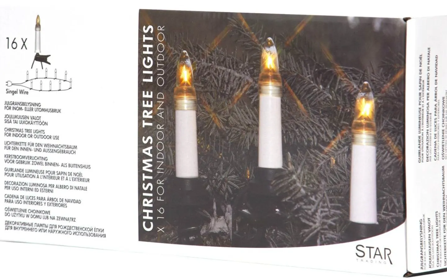 Erik från Star Trading är en klassisk, stämningsfull och enkelledad julgransbelysning för utomhusbruk. Slingan har 16 verklighetstrogna ljus som sprider ett klart och varmt sken.