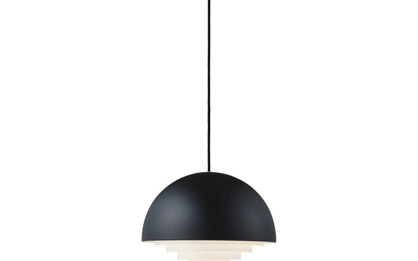 Härliga taklampan Motown, från danska Herstal, är en stilren takpendel i svartlackerad metall. Det vita bländskyddet gör att du får ett väl avbländat och jämt fördelat ljussken.