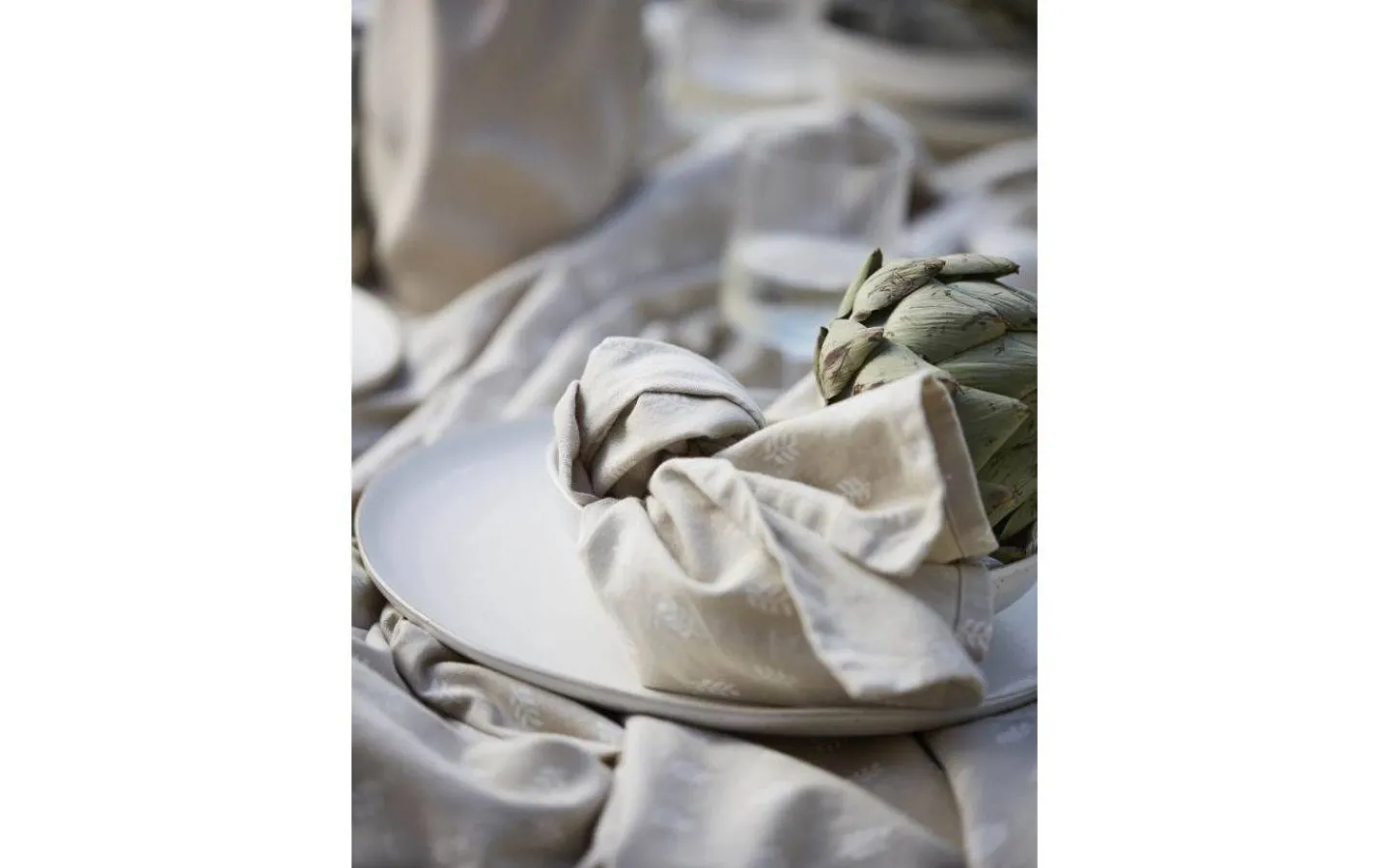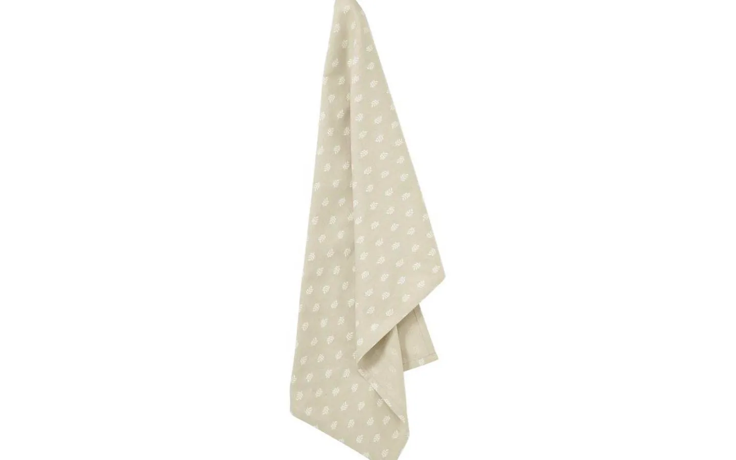 Kökshandduk med blocktryckt mönster. Storlek 50x70cm och en färgmatchad hank.