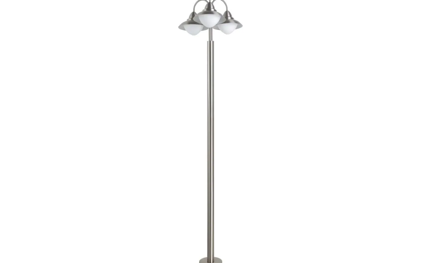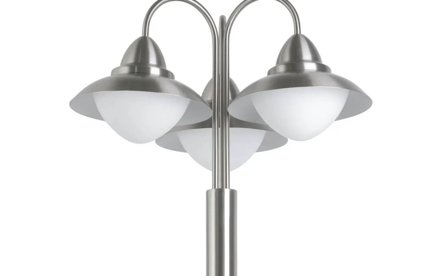 SIDNEY exteriörvägsljus i lyktastil har en kropp i rostfritt stål och tre huvuden med matta opala glasrutor i vitt. Den yttre stolplampan är lämplig för utomhusbruk på grund av sitt IP44-skydd mot sprutvatten, och dess klassiska stil kommer vackert att komplettera ditt utomhusutrymme. Glödlampor ingår inte.