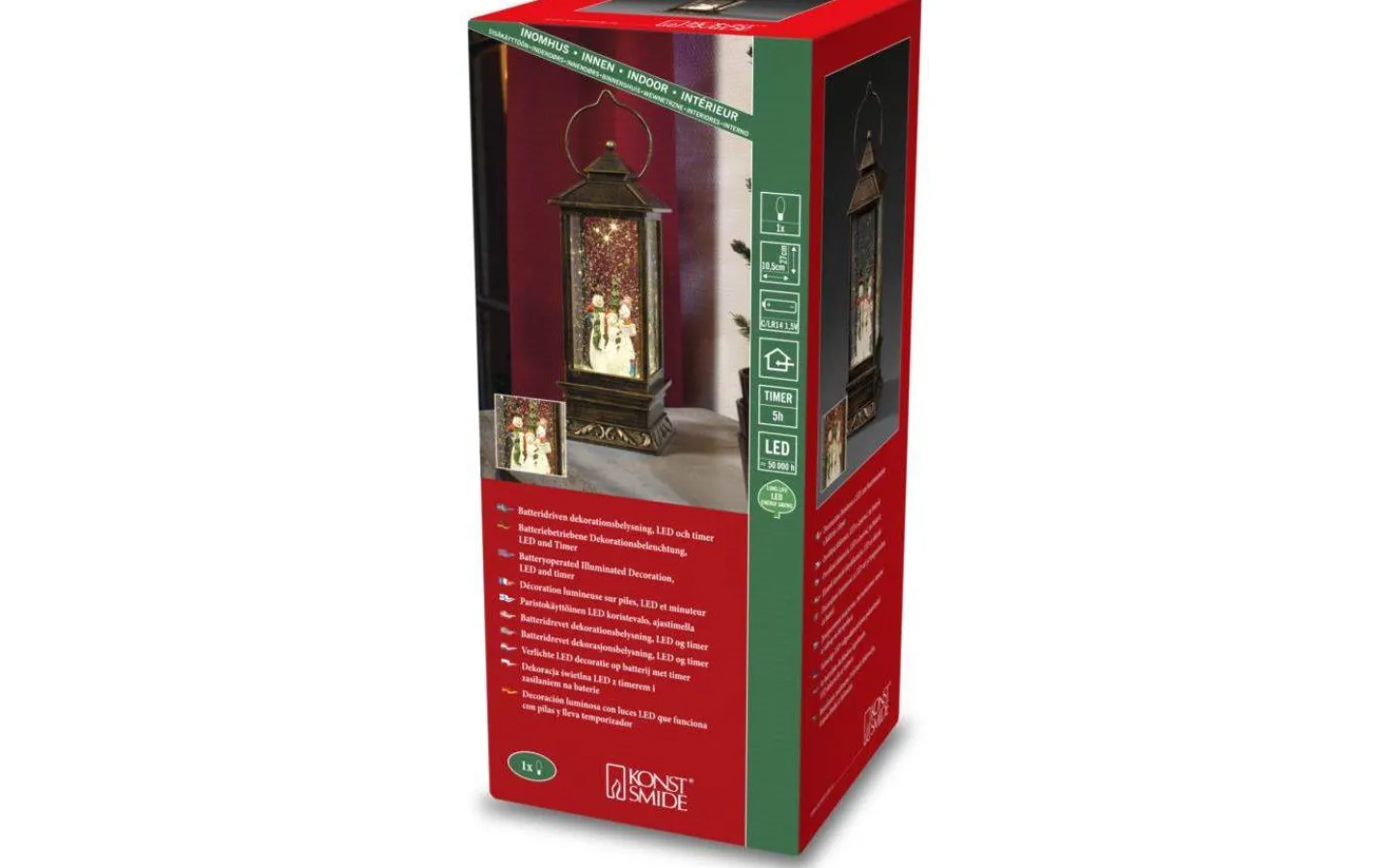 Glittrande vattenfylld lykta från Konstsmide som passar perfekt på många platser i ditt hem för att uppnå en riktig härlig julkänsla. När produkten är påslagen rör sig vätskan och glittret runt och skapar en magisk effekt.