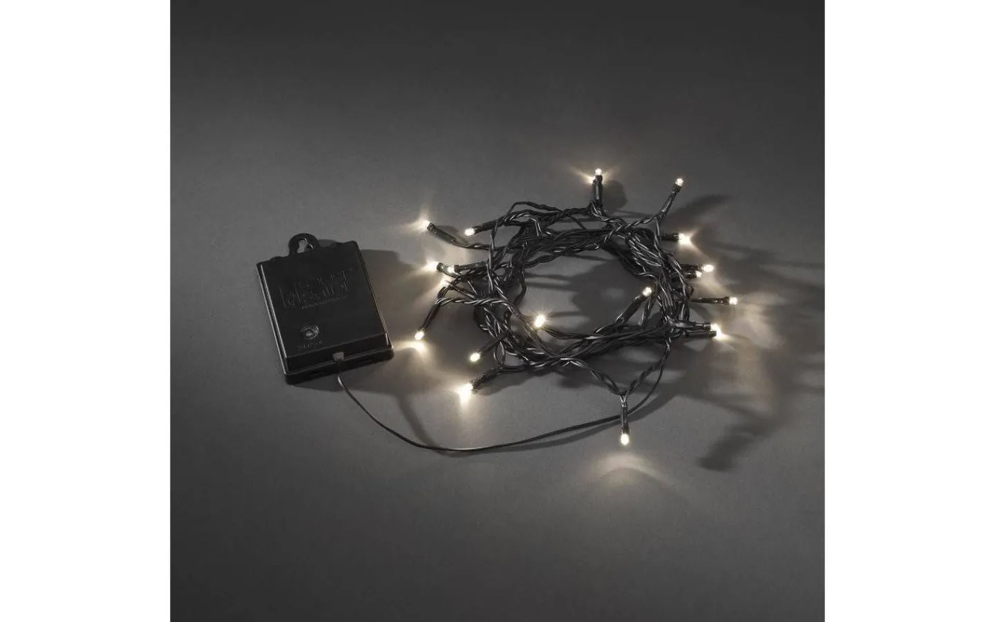 Batteridriven ljusslinga med skymningssensor från Konstsmide. Ljusslingan är 1,9m lång och har 20st små LED-lampor som lyser i ett härligt varmvitt ljussken. Perfekt att dekorera med utomhus för att skapa en riktigt härlig atmosfär.