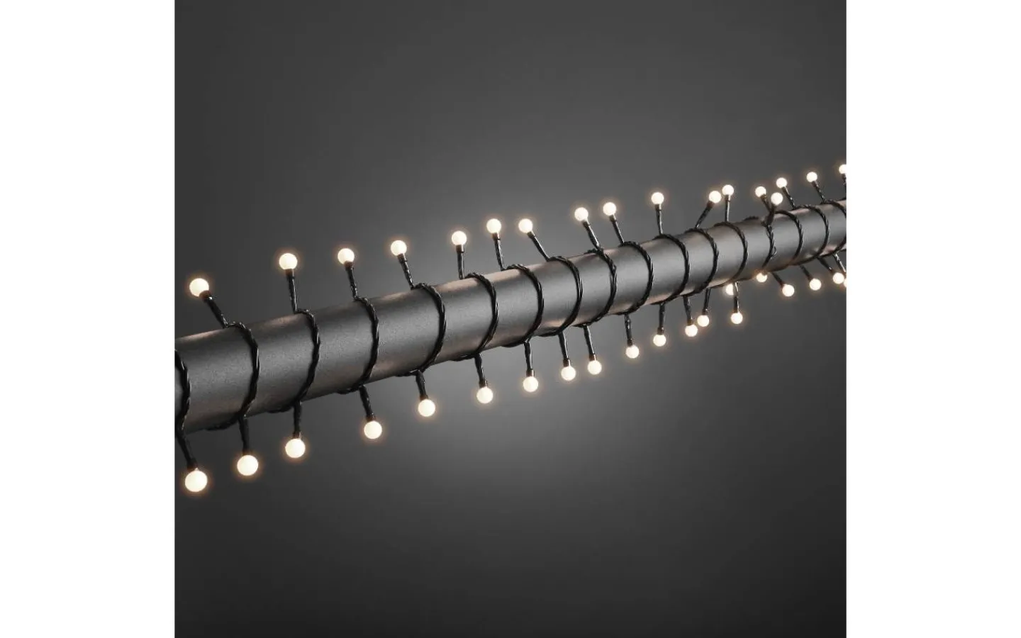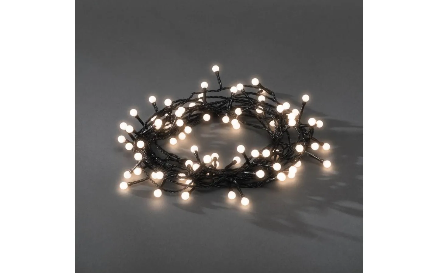 Cherry ljusslinga från Konstsmide är 6,3m lång med 80st vita små bollar som lyser upp i ett härligt varmvit ljussken. Med sin IP44 klass är denna slinga perfekt att dekorera med utomhus för att skapa en härlig atmosfär i nattens mörker.