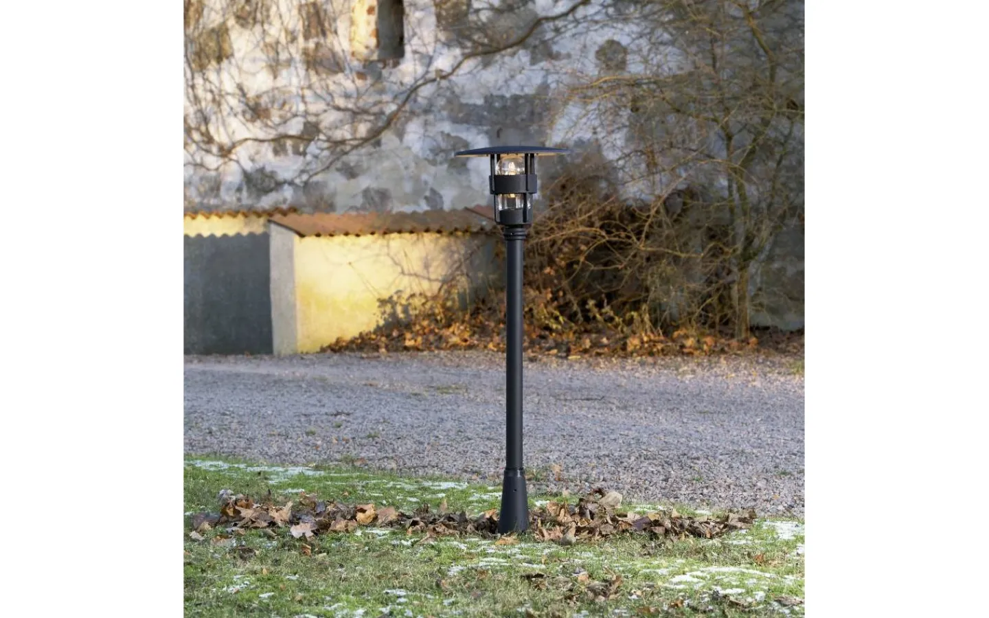 Stilfullt lykthus i enkel och modern design från välkända Konstsmide. Behåll stolpen och byt ut ditt befintliga lykthus till denna fina armatur. Freja är handgjord av svartlackerad aluminium med ljus insida och har en vacker glaskupa i klarglas som sprider ett fint ljus och hjälper dig att skapa en mysig och inbjudande utemiljö! Freja lykthus passar ypperligt som grindlykta, pollare eller på en stolpe med diameter på Ø48mm.