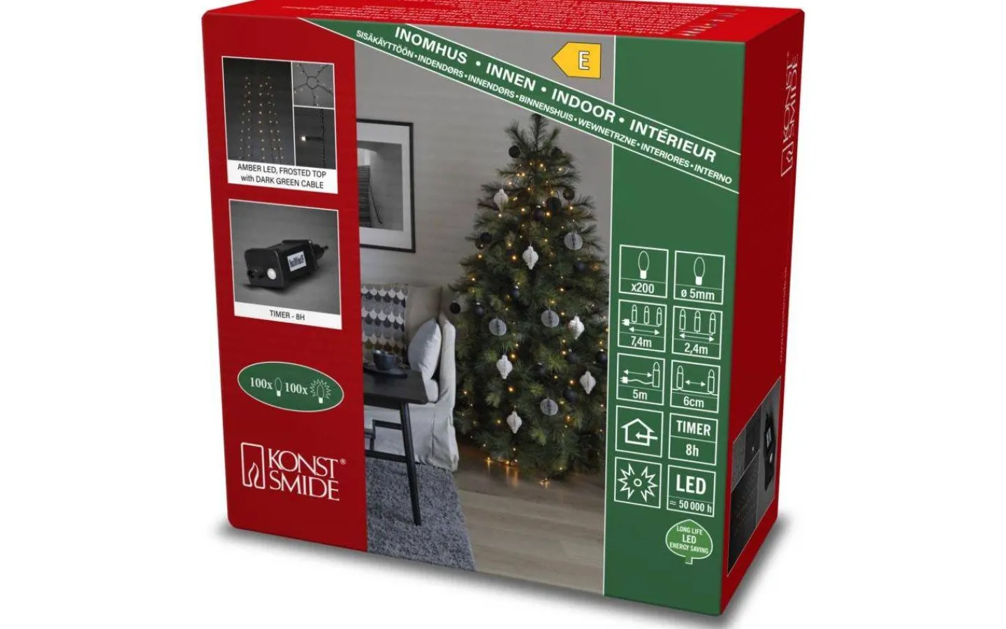 Denna vackra julgransslinga från Konstsmide har 200st LED-lampor som lyser upp i ett vackert extra varmvitt ljussken. Julgransslingan är 2,4m hög med 5st fördelade strängar för att få en jämn spridning av lysdioderna.