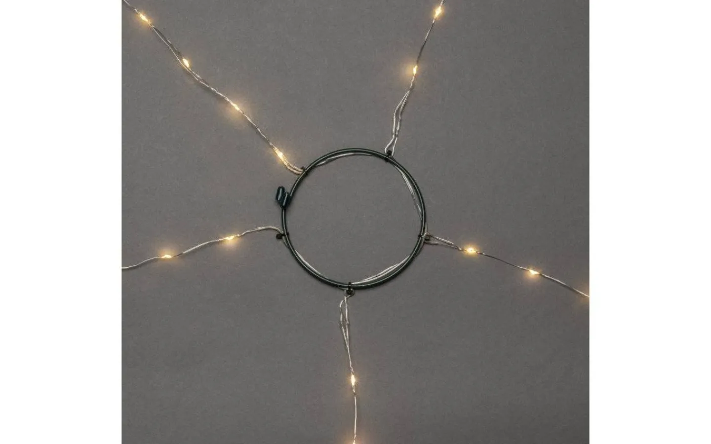 En vacker julgransslinga, från välkända Konstsmide, med tunn silverfärgad metallkabel och 240 väldigt små, fina LED-lampor som avger ett extra varmvitt (amber) ljussken. Smidigare ljusslinga till din julgran får du leta efter! Trä endast ringen över toppen på granen och låt de 5 strängarna, fyllda med lampor, hänga fritt längs med granen. Superenkelt och väldigt fint!