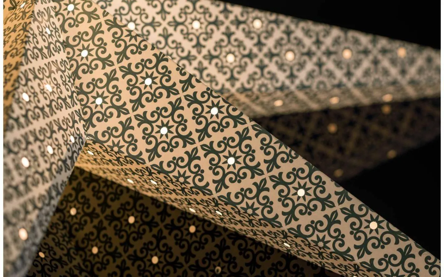 Liv julstjärna från Konstsmide är en vackert mönstrad julstjärna i papp. De utstansade hålen släpper igenom ett behagligt ljussken.