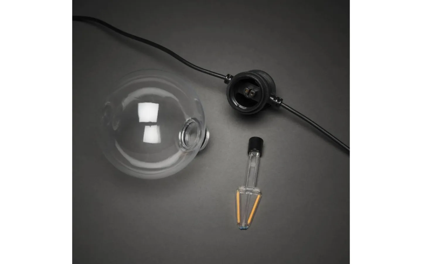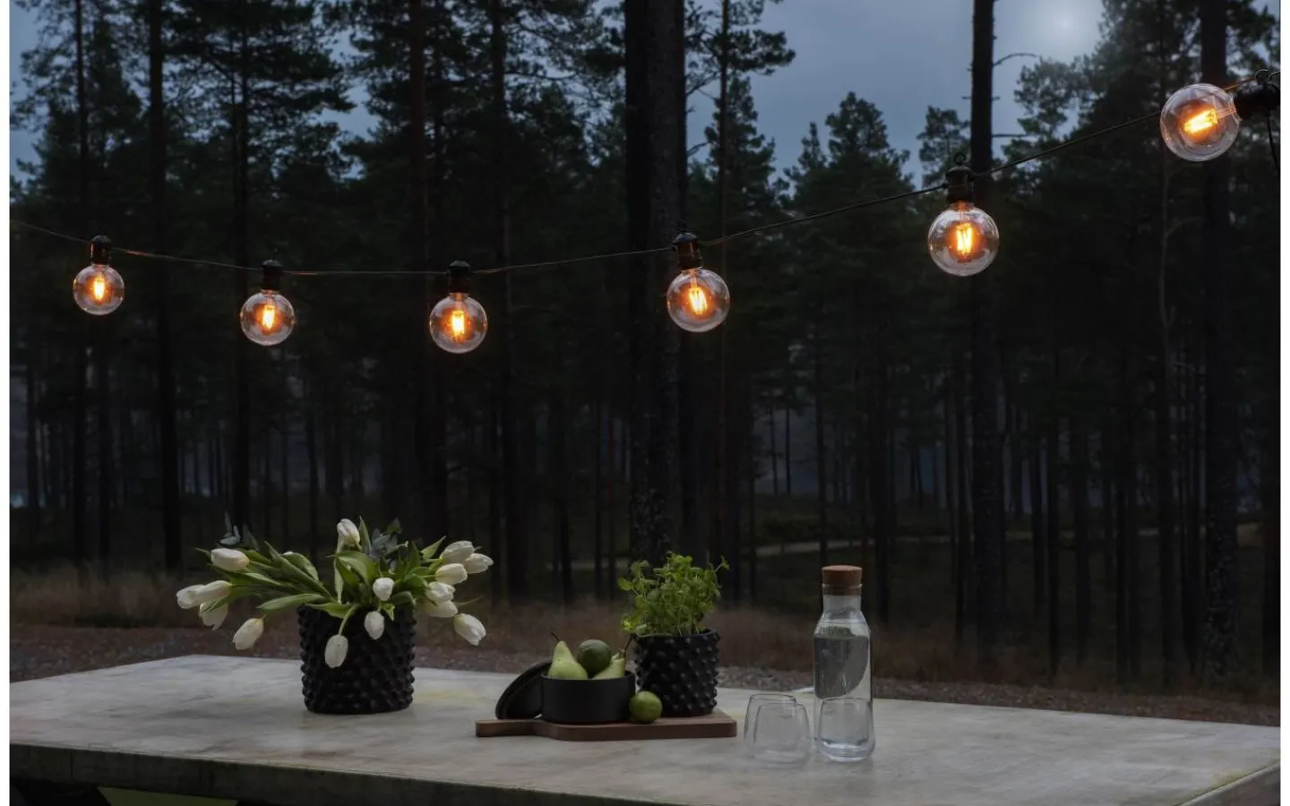 Sunny ljusslinga från välkända Konstsmide är en solcellsdriven ljusslinga med 10st lampor som lyser upp i ett extra varmvitt ljussken. Lamporna sitter med 50 cm avstånd och är utbytbara, se passande lampa under tillbehör.