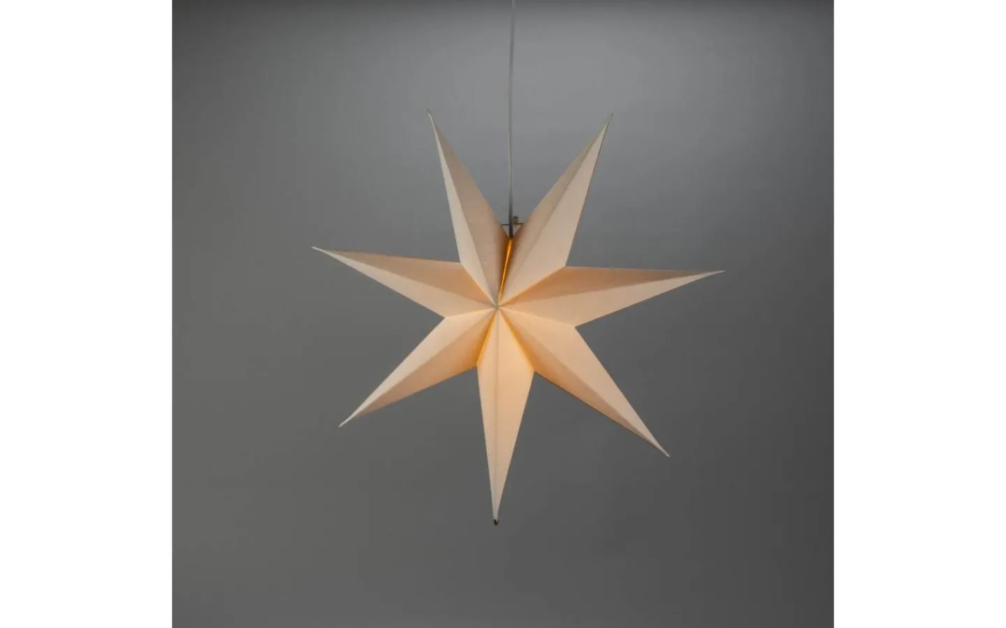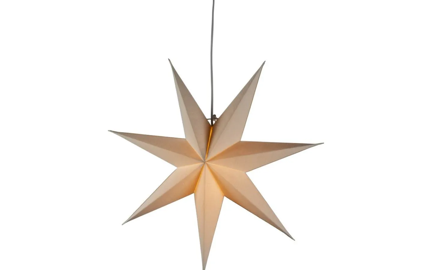 Klassisk adventsstjärna i vitt papper med vacker textilstruktur. Levereras med praktiskt sladdställ och vit sladd med strömbrytare. Dekorativ detalj som skapar en varm, mysig och hemtrevlig julstämning.