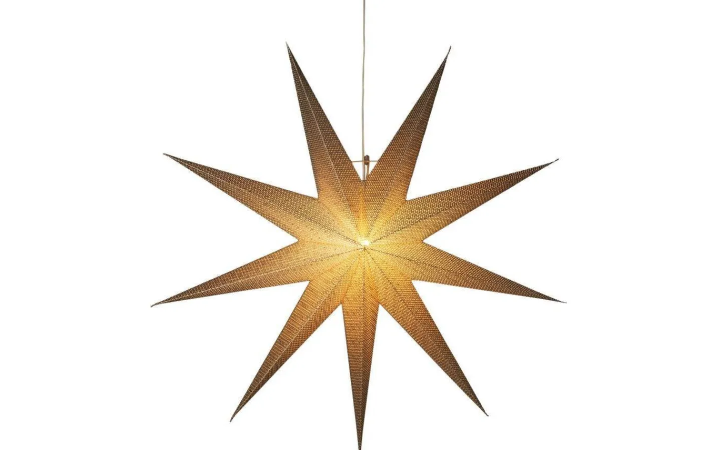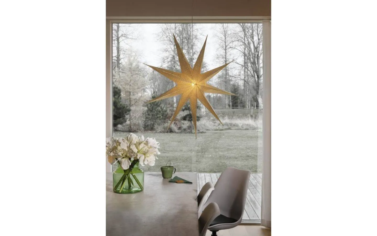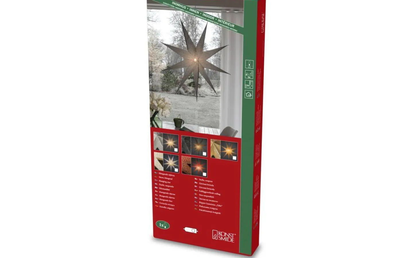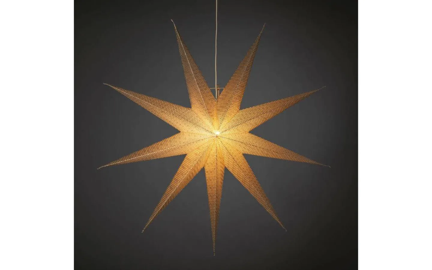 Vackra Zoe julstjärna från Konstsmide är av papp med ett tätt utstansat mönster som släpper igenom ett härligt ljussken.