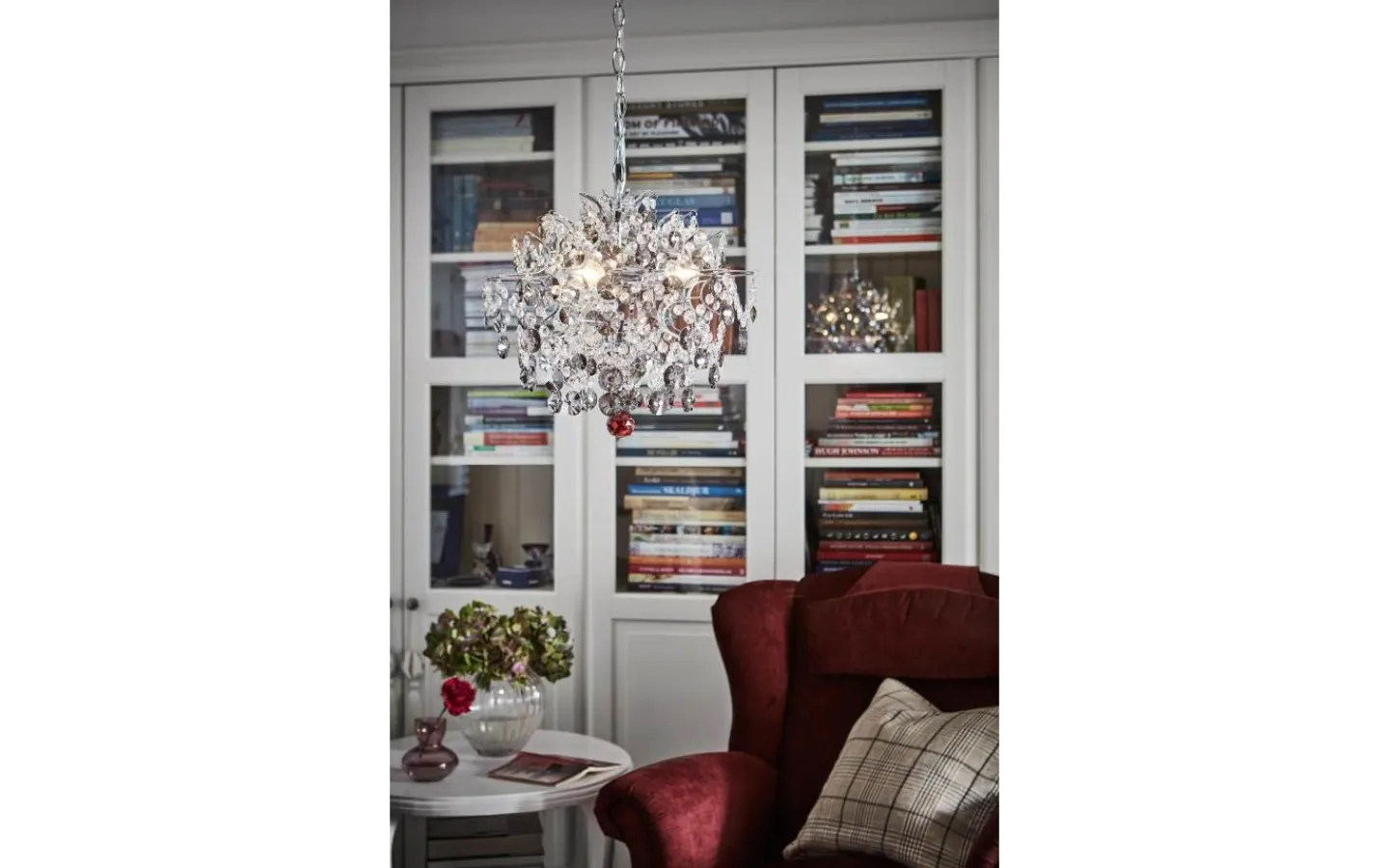 Kristallkrona Hidden Gem från välkända Markslöjd. Denna kristallplafond har maskinskurna prismor i klart glas och rökfärgade glas. Hidden Gem monteras på takkrok och ansluts till jordad kontakt.