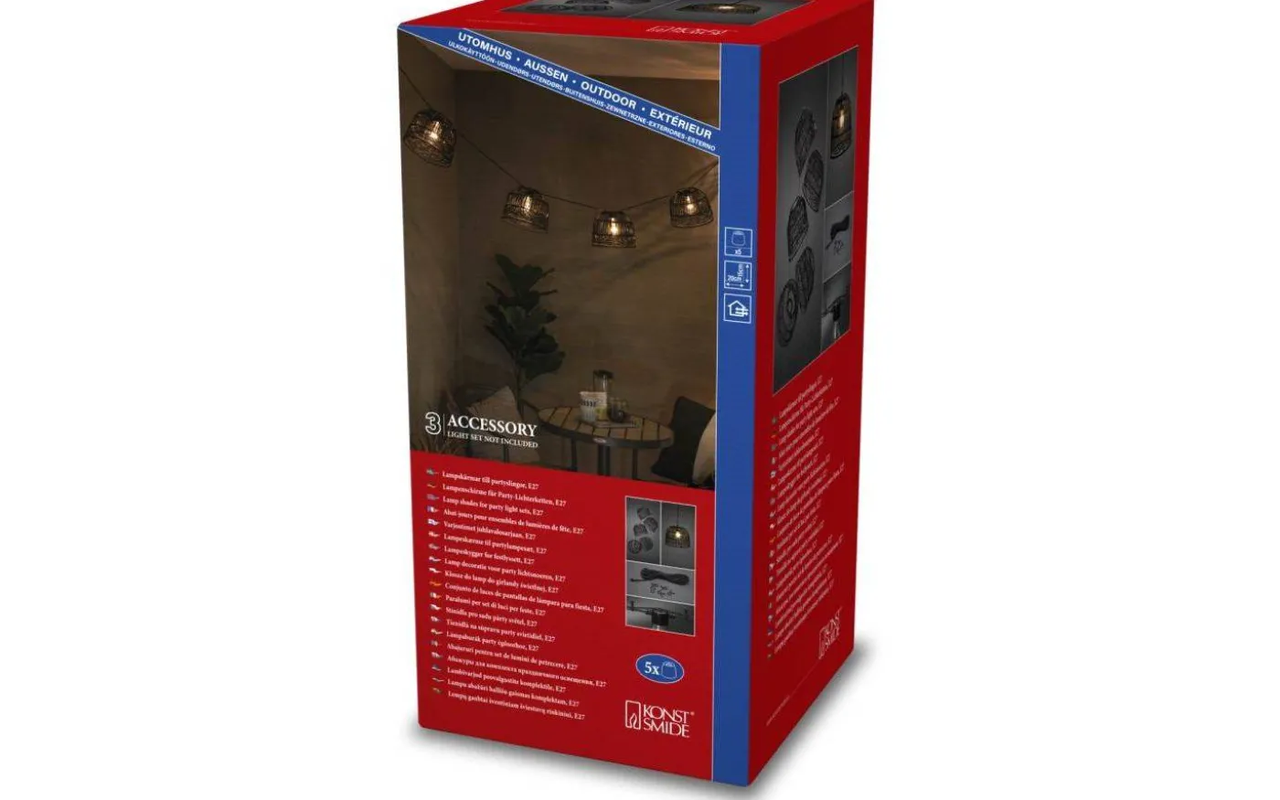 Kupa från Konstsmide är ett 5-pack dekorativa lampskärmar i konstrotting. Perfekta att sätta på partyslingor eller att hänga ensamma med passande sladdställ för utomhusbruk.