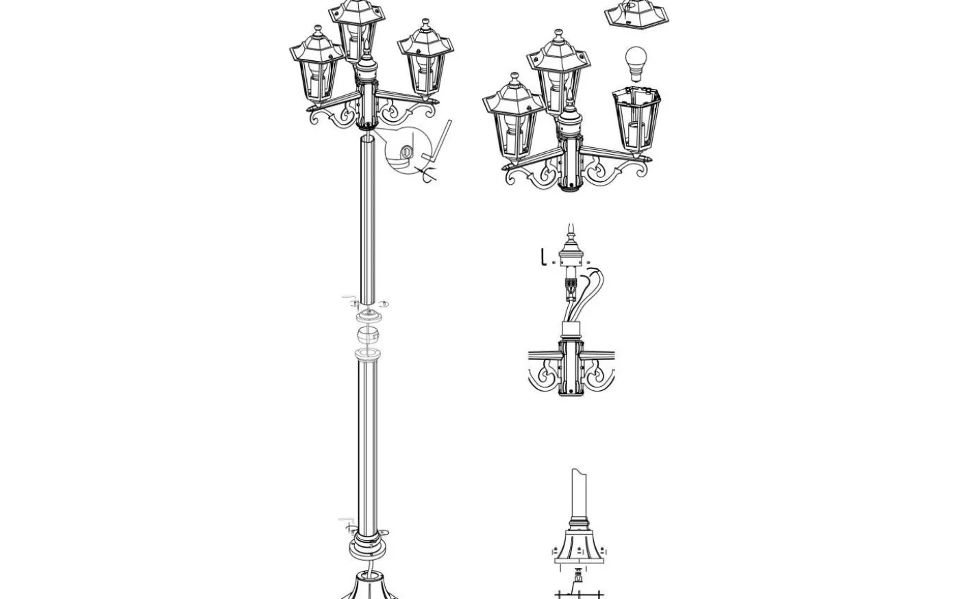 De avbildade glödlamporna ingår inte. Produkten mäter 192 cm och har E27 lamphållare som kräver E27 glödlampor.