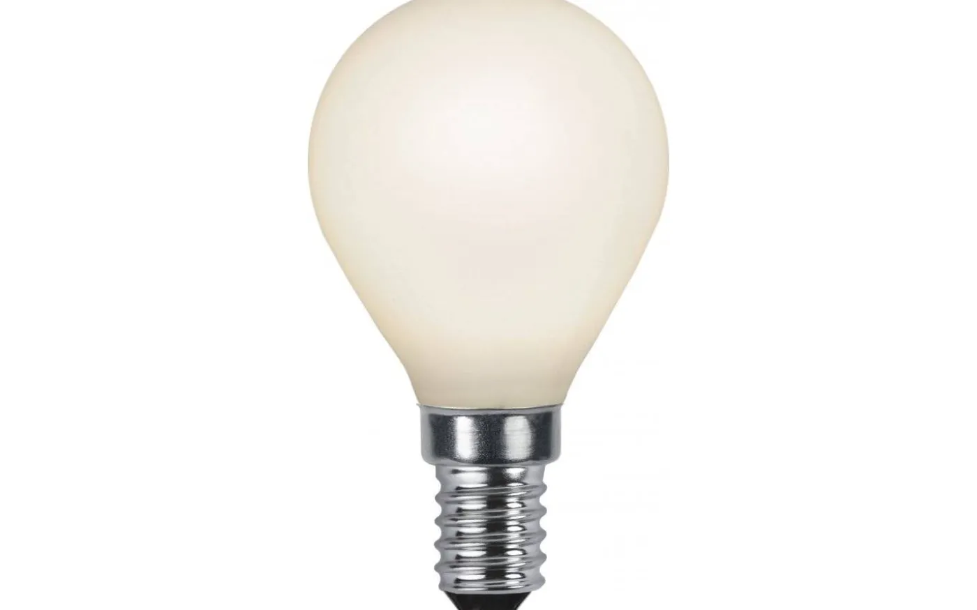 Helt opal lampa med hög färgåtergivning, RA90. Med E14-sockel och varmvitt ljus 2700K. Lika fin under en skärm som synlig.