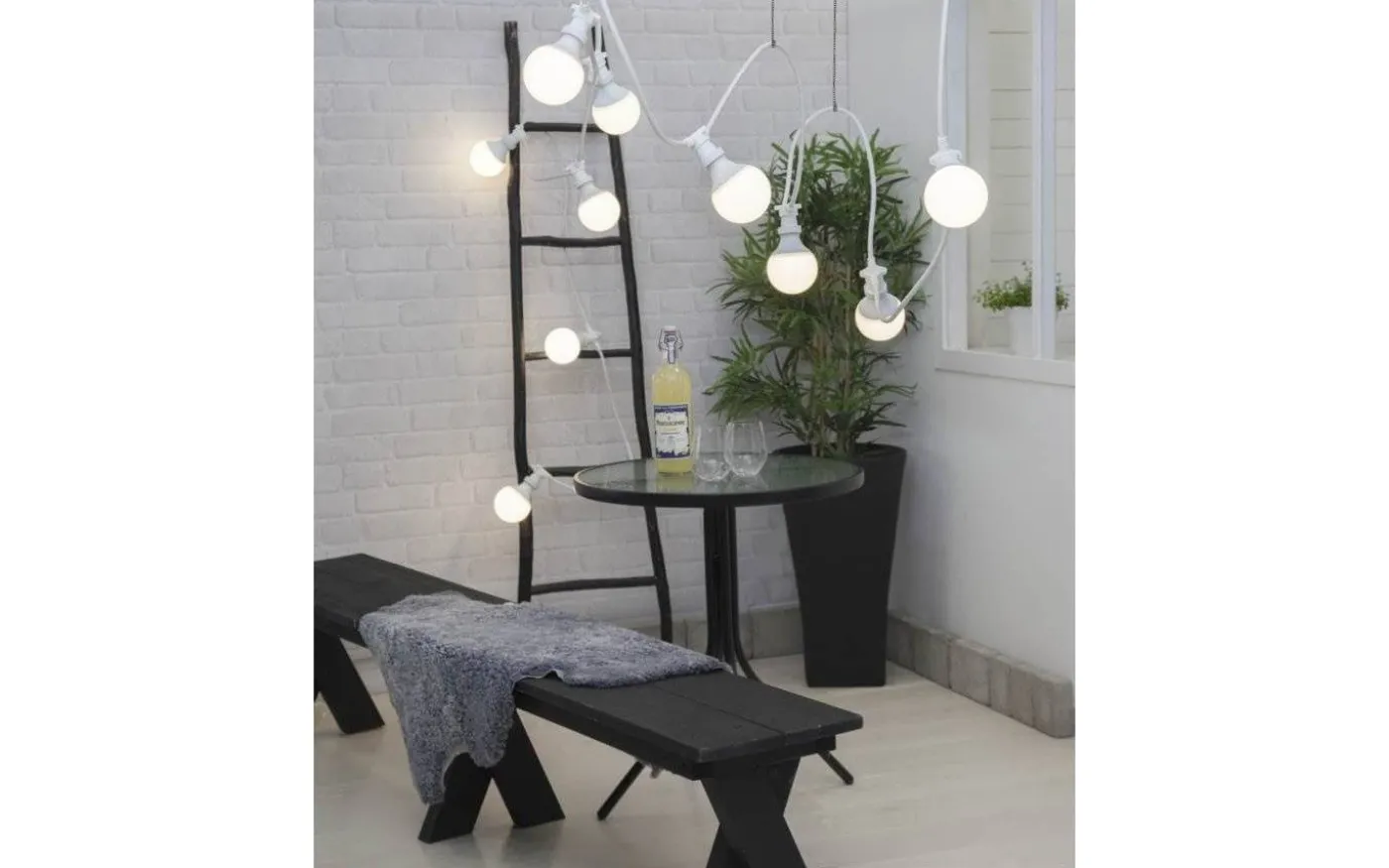 En ljuskälla i okrossbar polycarbonat för både inomhus- och utomhusbruk. Använd denna ljuskälla i din slinga för att lysa upp din balkong, uteplats, julgran eller i partytältet.