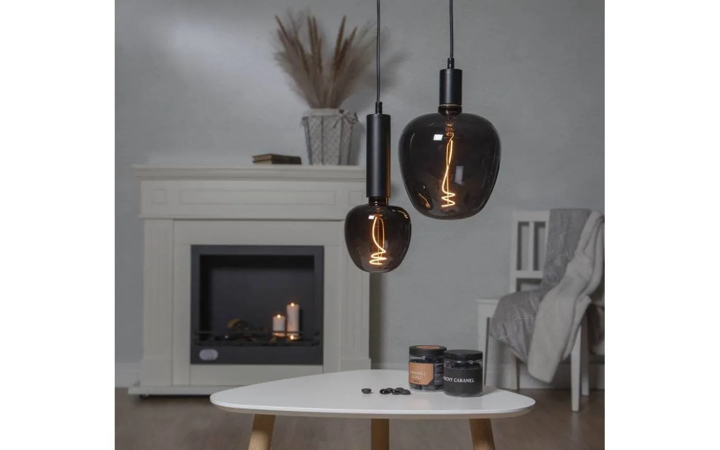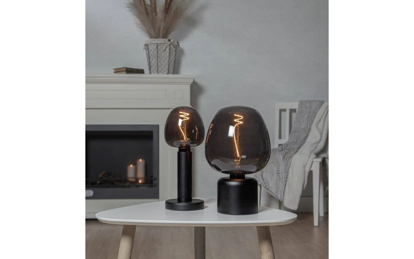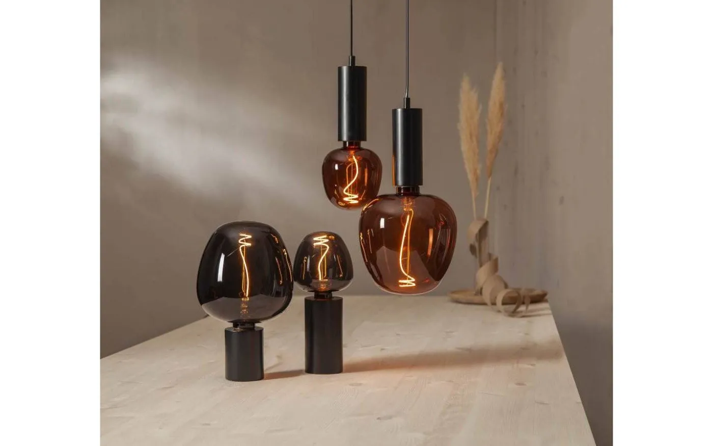 En riktigt läcker LED-lampa med spännande form och svart glas. När lampan är tänd syns den gula filamenttråden som har vacker fin skruvad form.