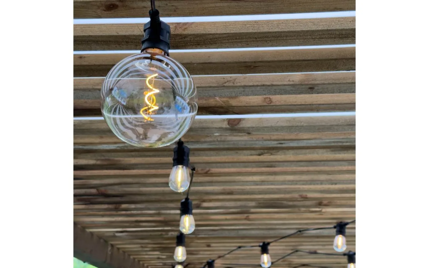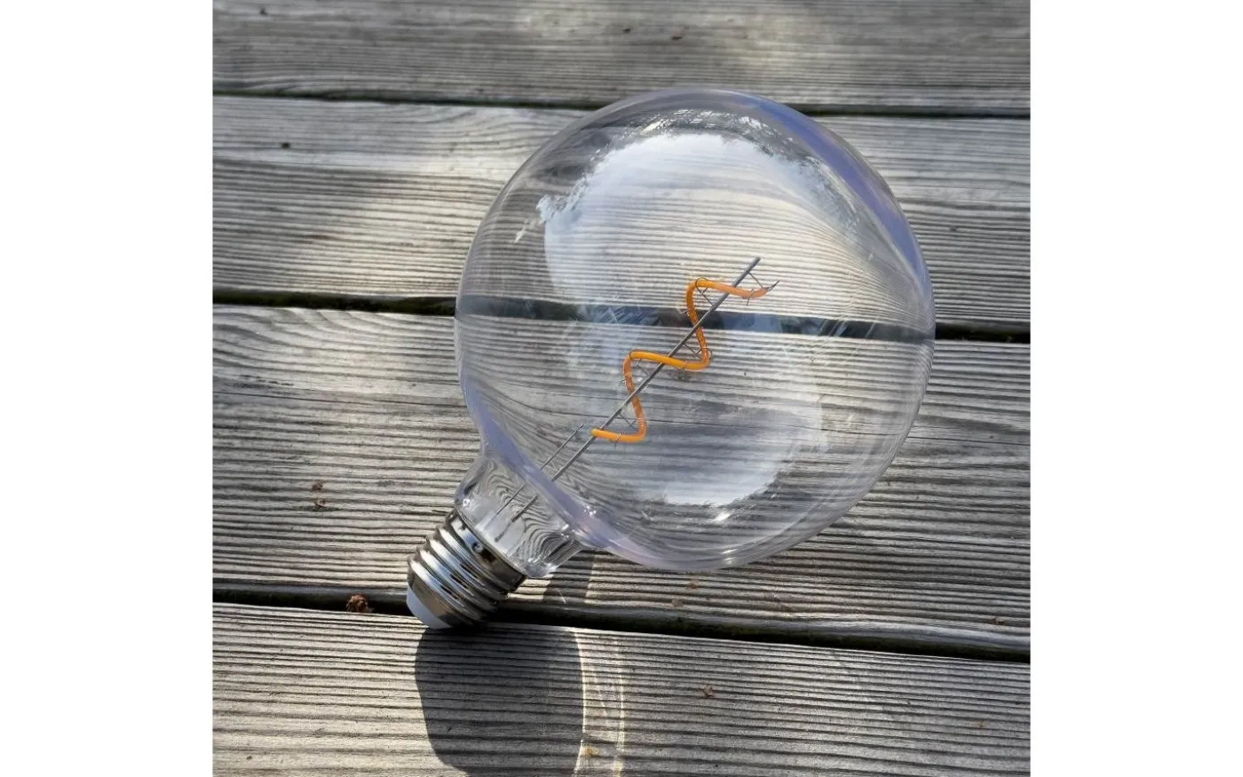 Denna Deco bulb med transparent vädertålig kupa i XL-format (12cm) passar perfekt till pendeln Gravity, men även till partyslingan Cosy.