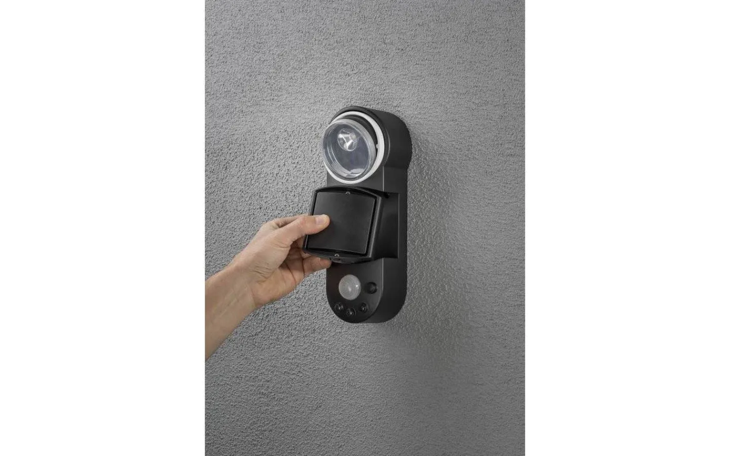 Denna funktionella vägglampa är batteridriven med inbyggd rörelsevakt och gör sig utmärkt där tillgång till ström saknas men behov av belysning finns, exempelvis på uteplatsen, i entrén eller garaget.