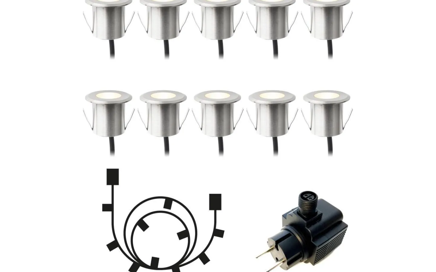 Paketet innehåller 10 decklights, 10m grenkabel samt en transformator (21w). Fyll gärna på med fler lampor och grenkablar om det behövs.