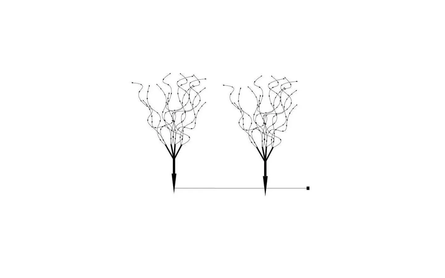 Twiggy består av ett set med 2 stycken dekorationskvistar fyllda med 160 LED-lampor vardera. Kabeln mellan de två kvistarna är 3 meter lång och ger en ökad flexibilitet för hur du kan placera ut dina Twiggy. De medföljande markspetten gör det lätt att trycka ner kvistarna i en kruka eller direkt i rabatten och dessa lysande buskar blir en vacker dekoration i en kruka på vardera sida om ytterdörren, i ett prydnadsgräs eller i en lägre buskliknande växt så som ljung, hortensia eller stäppsalvia. Välj själv om du vill placera Twiggy med mellanrum (upp till 3 meter) eller direkt intill varandra.