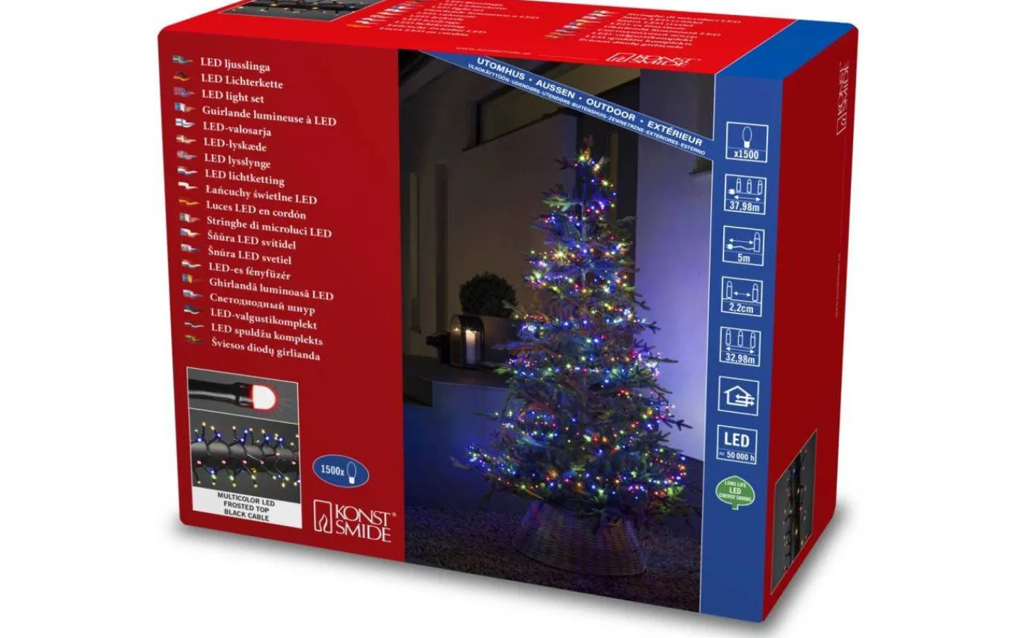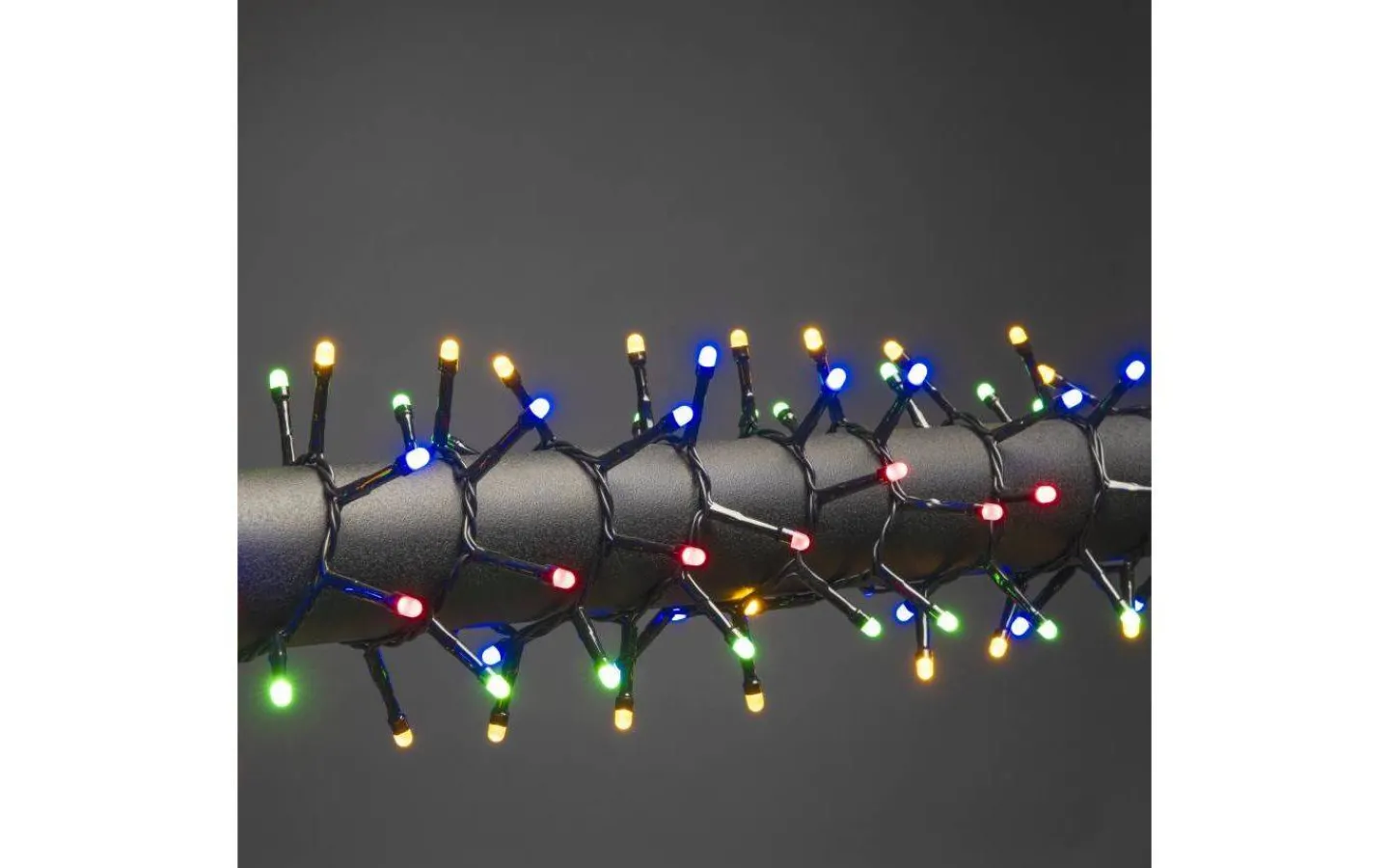 Cluster ljusslinga från Konstsmide är 32,98m lång med hela 1500st små frostade LED-lampor som lyser upp i ett härligt multifärgat ljussken. Med sin IP44 klass är denna slinga perfekt att dekorera med utomhus för att skapa en härlig atmosfär i nattens mörker.
