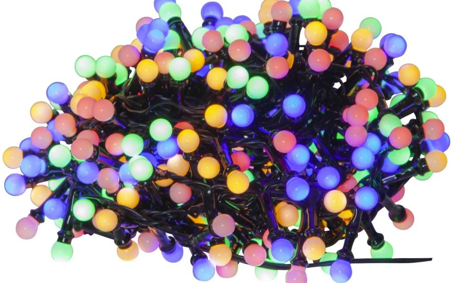 Berry är en superfin ljusslinga med svart kabel och 300 stycken små klotlampor i färgglada kulörer. Denna ljusslinga blir en fin dekoration som passar lika bra utomhus som inomhus. I varje vitt klot finns en högkvalitativ ljuskälla i LED som avger ett färgglatt ljussken.