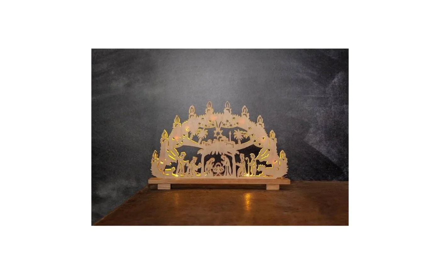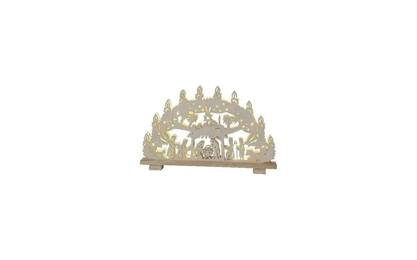 Fina juldetaljer och 10 st ljuskällor pryder denna dekorativa Lazer cut ljusstake. Ljusstaken är 29 cm hög och 45 cm lång och lyser med ett härligt varmvitt sken som bidrar till mysig stämning i juletider.