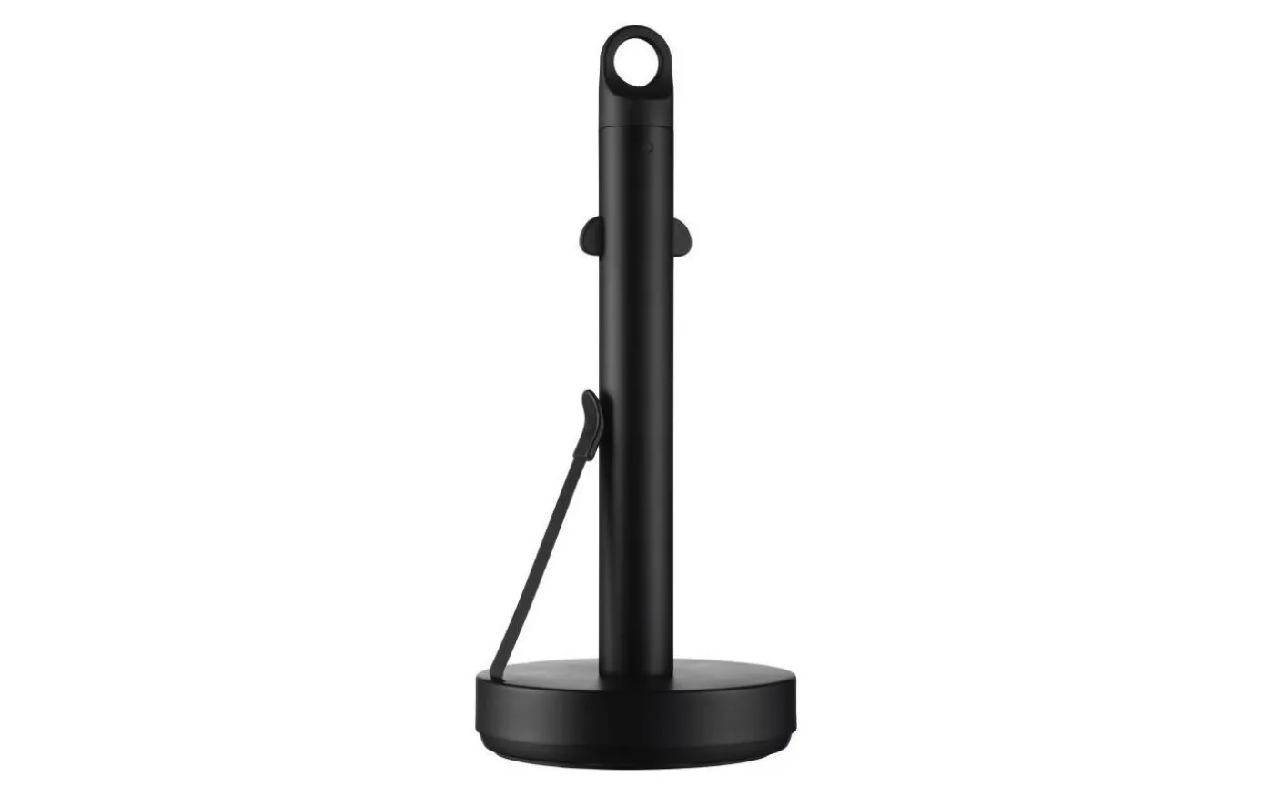 Hushållspappershållare Loop. Mått: H34 cm. Färg: Svart Hushållspappershållare LOOP från Blomus är enkel att använda med bara en hand och har en fjäder som gör att pappersrullen inte rullar upp när du river av den bit papper som behövs. LOOP är därför en miljövänlig och tidssparande hjälpreda i köket. LOOP är gedigen och står stadigt och stabilt på bordet.