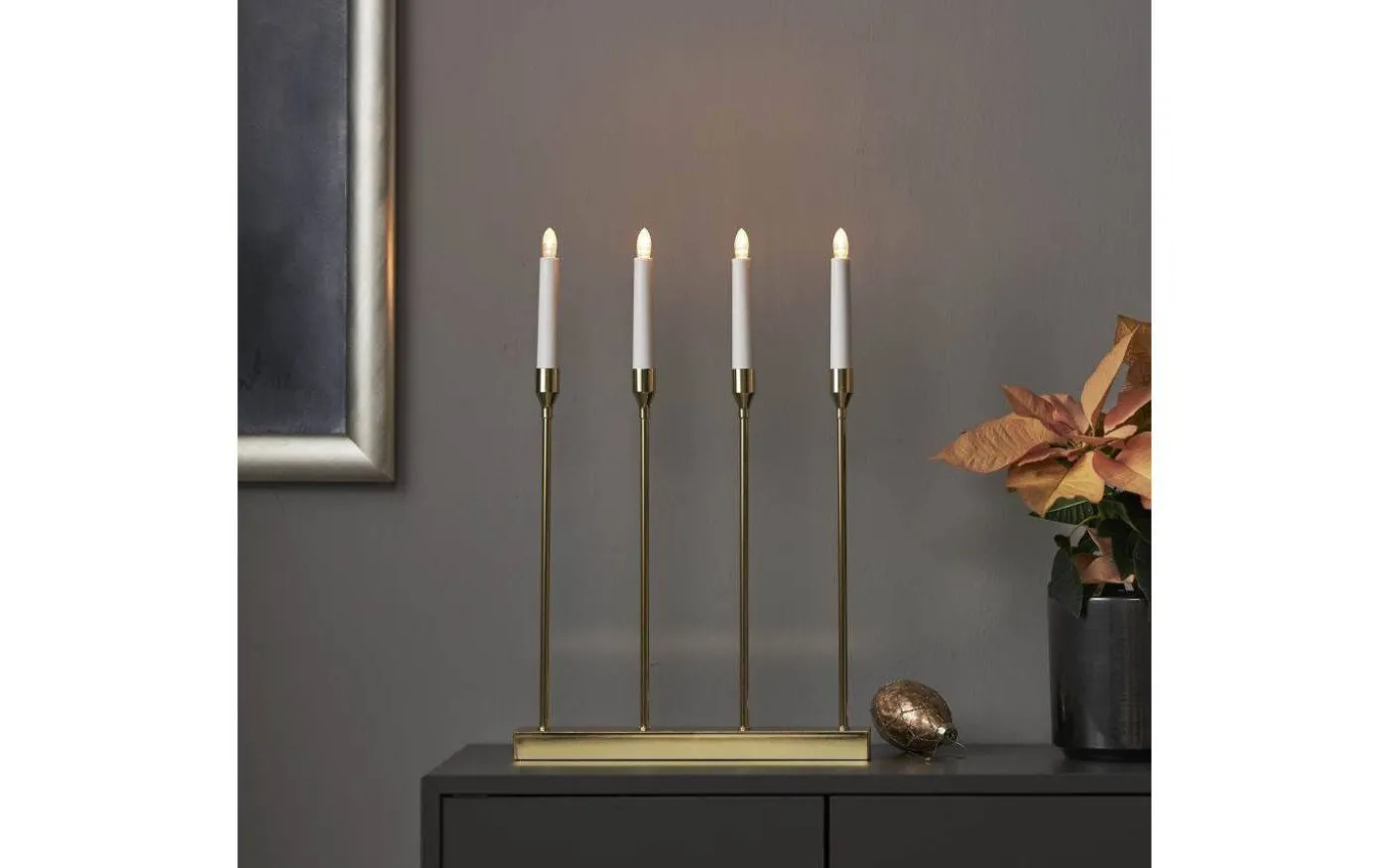 Lottie är en batteridriven adventsljusstake från Star Trading. Denna 4-armade ljusstake är gjord i metall med mässingsfärgad finish.