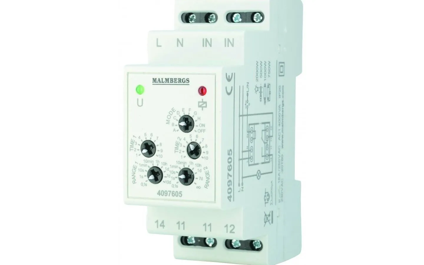 Relä med separata tidsinställningar för tillslag, fördröjning och pulslängder. Inställningar görs enkelt via vred på framsidan. Brett inställningsområde från 0,1s till 100 dagar med hög tidsnoggrannhet och funktion för permanent på eller av. LED-dioder för indikering av läge och