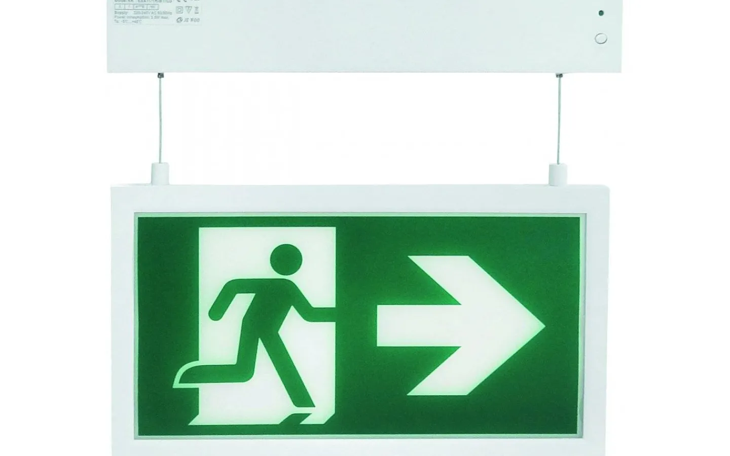 Stomme i ABS-plast. Inkl. 3 st. piktogram, två med pil vänster/höger vändbar, en med pil ner samt en vit täcksida. Läsavstånd 30 m enligt EN 1838. Armaturen har autotest. Autotest innebär att den utför olika självtester genom att kontinuerligt testa batteriet och lysdiodernas kondition. Det finns även en testknapp för att man manuellt skall kunna testa armaturen. Armaturen har både kontinuerlig drift (maintained) och drift vid enbart strömbortfall (non maintained). Väljs vid inkopplingen. Dubbelisolerad.