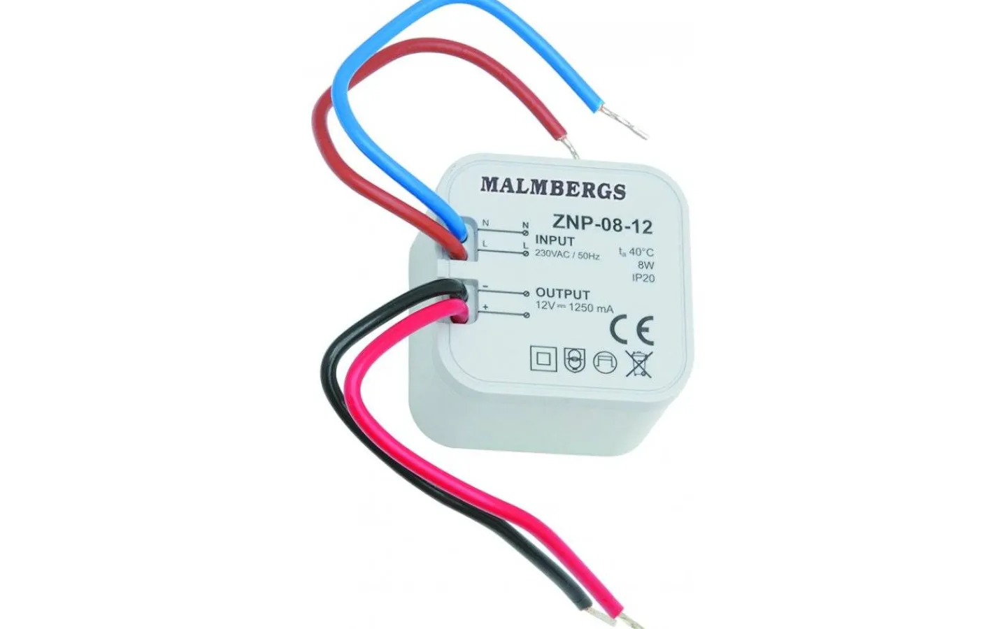 12V DC transformator för montering i apparatdosa. Max 8w.
