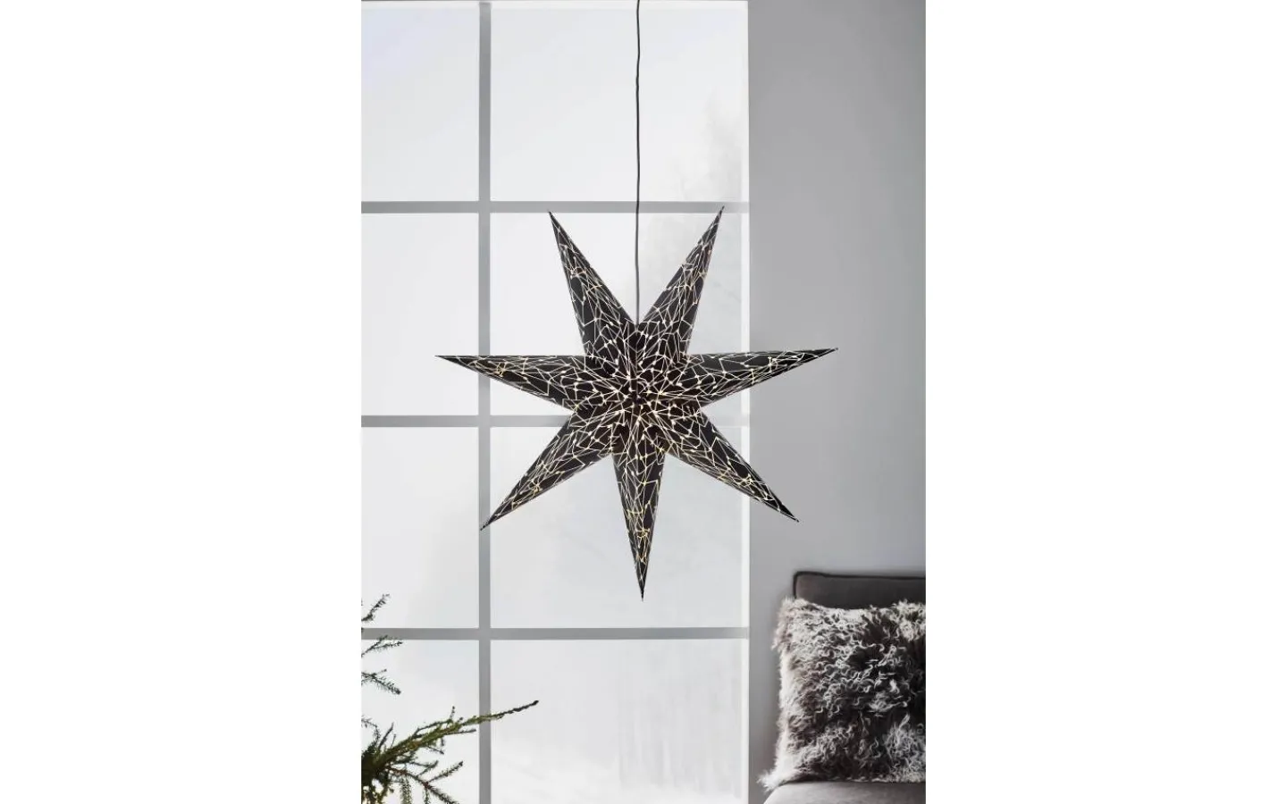 Karla julstjärna från Markslöjd är tillverkad av papp. Julstjärnan kommer komplett med en 3,5m kabel med strömbrytare på sladd och stickkontakt för vägguttag.