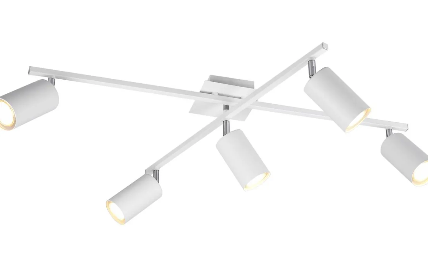 Perfekt och variabelt ljus! MARLEY taklampa är inte bara praktisk i form och funktion, utan framför allt en sak: helt enkelt vacker! De individuella spotlightsna har en diskret design och imponerar med sitt högkvalitativa utförande. Armarna och spotlightsna på taklampan med 5 ljuskällor är fritt rörliga och kan justeras individuellt efter behov. Oavsett om den är i köket, i hallen eller i vardagsrummet: MARLEY är mångsidig och kan enkelt kombineras med olika inredningsstilar. Den är designad i färgen vit och kan därför elegant komplettera moderna färgkoncept. För modern och pålitlig belysning rekommenderas en LED-lampa. Den erbjuder hög ljuskvalitet, är mångsidig och övertygar med jämn belysning. Dess långa livslängd och låga värmeutveckling gör den till det perfekta valet för en mängd olika användningsområden. Ljuskälla: exklusiv 5x GU10 · max. 35W. Extra information: Takmontering, IP20, Lampa(or) ingår ej, Vridbar