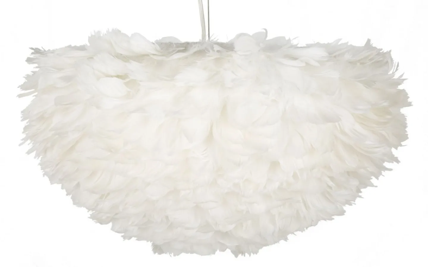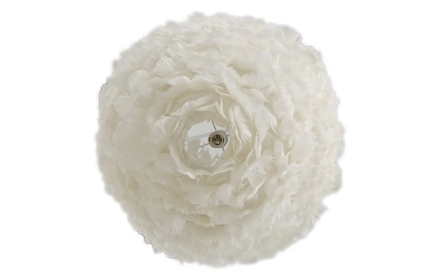 Enkel taklampa som består av en uppsättning syntetiska fjädrar.