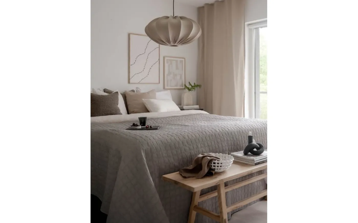 Mavis sängöverkast från Svanefors är tillverkat i matelassé som är ett tyg vävt i två lager i ett upphöjt nästan vadderat mönster.