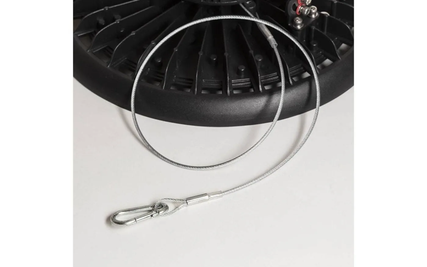 Till denna strålkastare medföljer en vajer på 0,5m samt en upphängningsring och en kabel på 0,2m. Önskar du förlänga kabeln rekommenderar finner du passande kabelskarv IP67 under tillbehör.