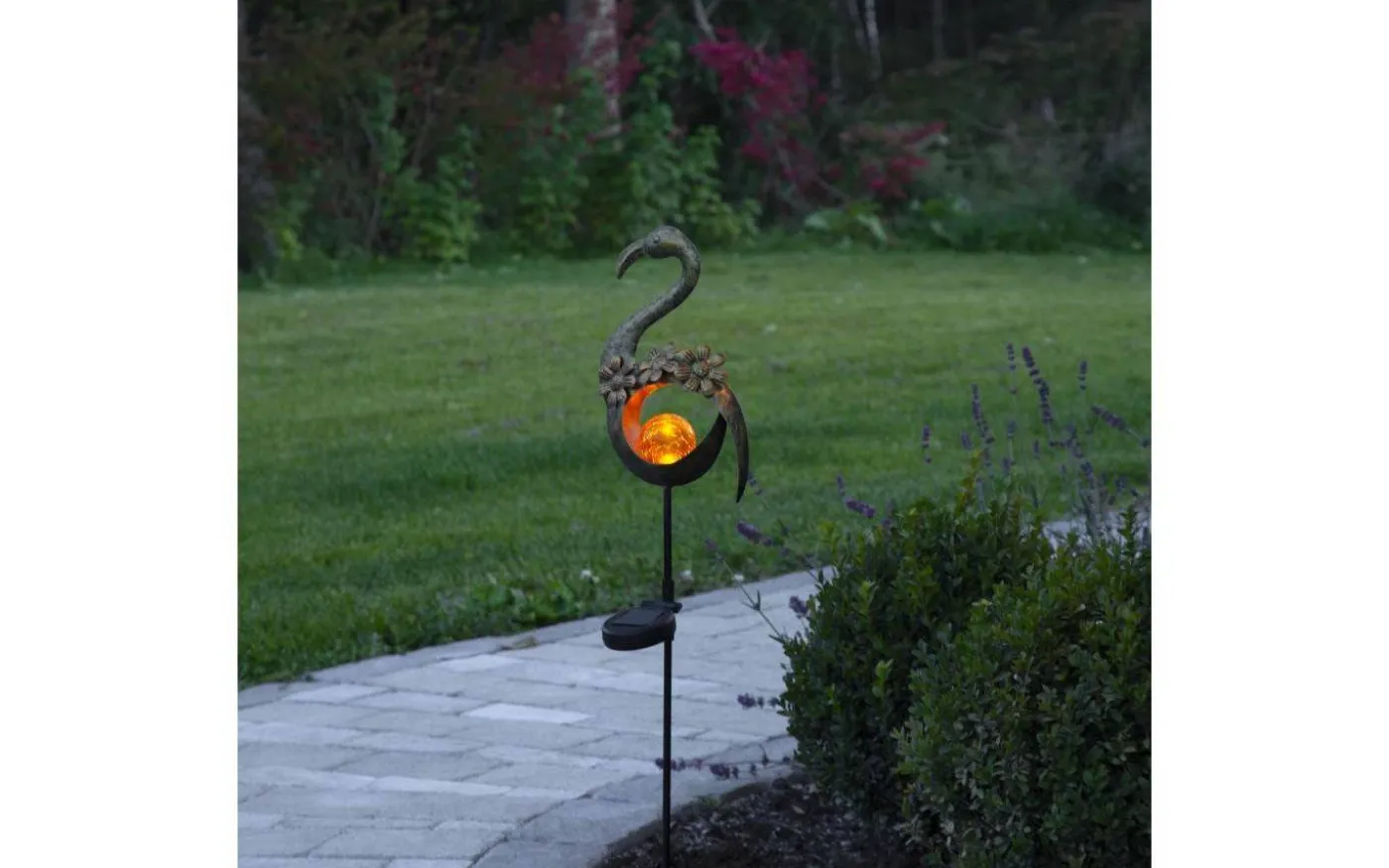 Solcellspinnen Melilla Bird är en brons färgad trädgårdsdekoration i form av en fågel och blommor. Denna solcells artikel blir en vacker dekoration och är lättplacerad i en plantering i trädgården eller på en balkong eller terrass. Den amberfärgade glaskulan lyser upp med ett amberfärgat sken under natten. Placera solcellsdekorationen där solen kan nå panelen under dagen för att få ultimat laddning till det medföljande batteriet. 1 batteri AArechargeableNiMH ingår. Batteritid ca 6h.