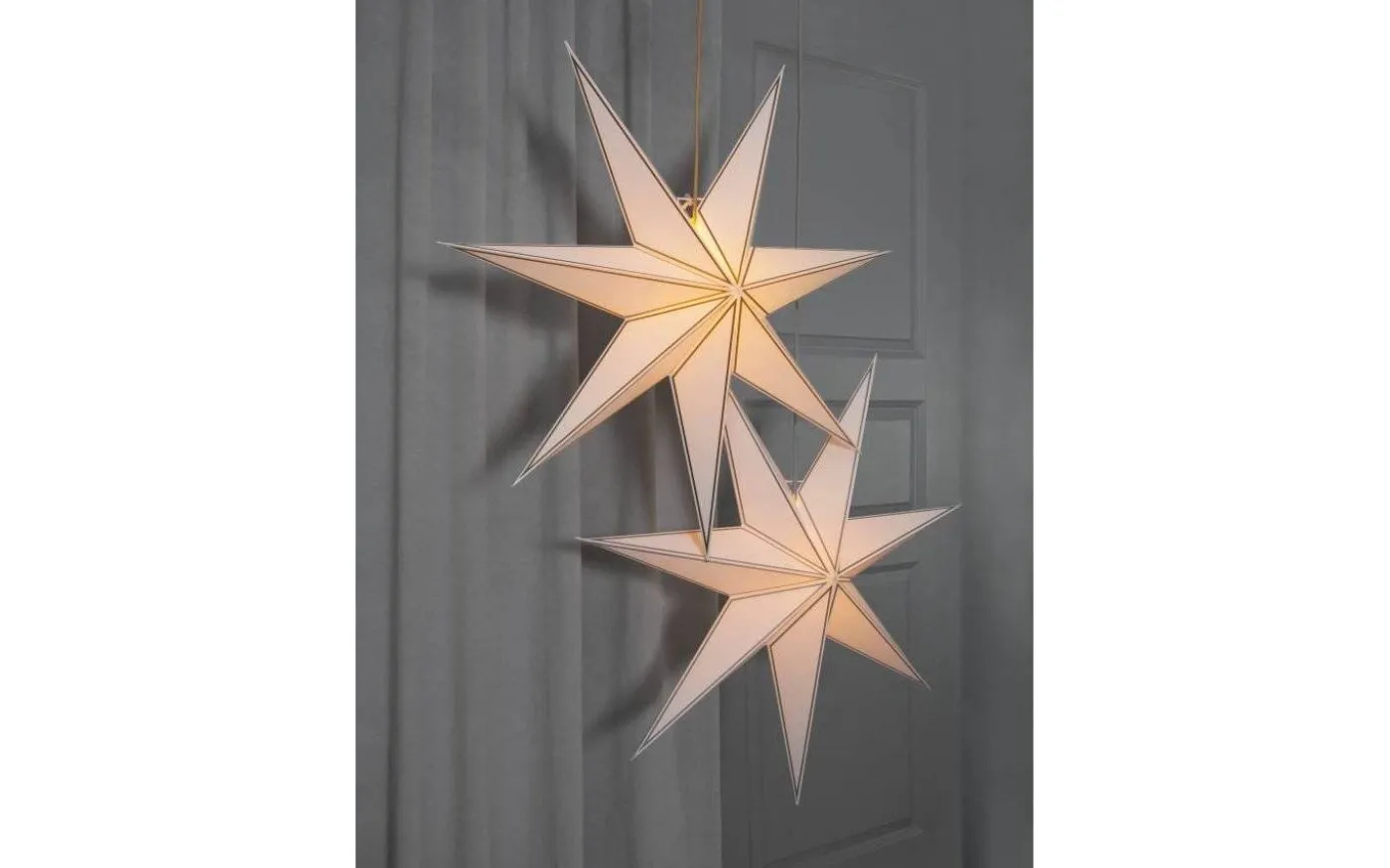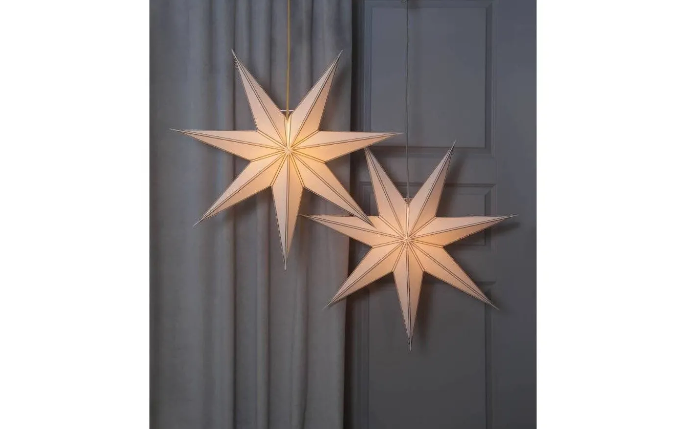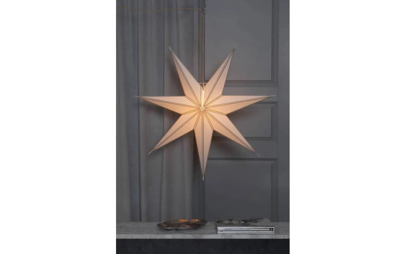 Denna dekorativa pappersjulstjärnan är vit och finns i 2 st olika utföranden.